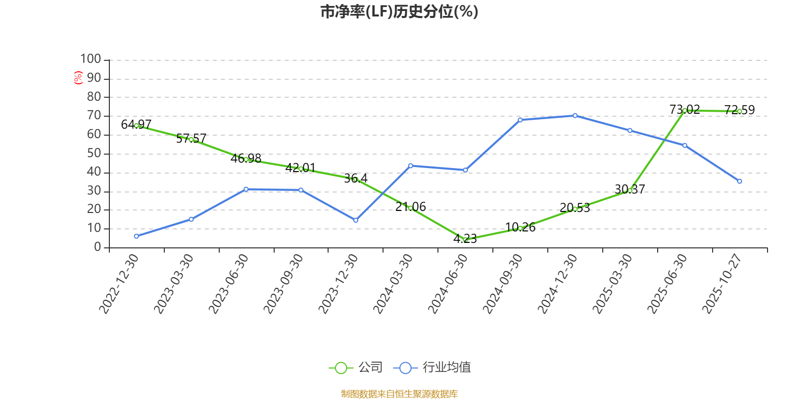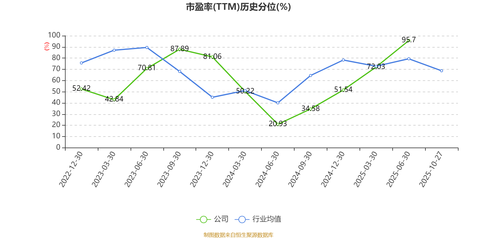 市盈率、市净率为负时,不显示当期分位数,会导致折线图中断。