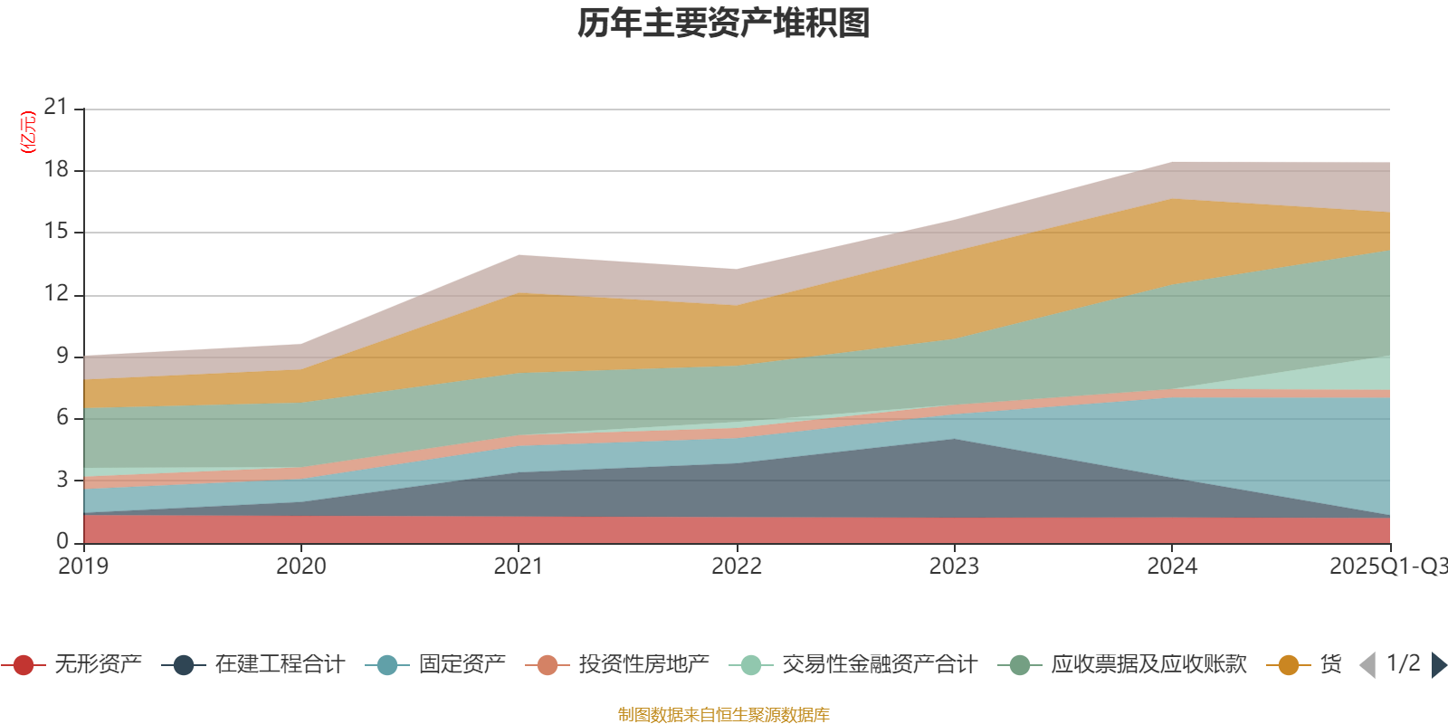 资产重大变化方面,截至2025年三季度末,公司货币资金较上年末减少55.94%,占公司总资产比重下降12.63个百分点;固定资产较上年末增加46.47%,占公司总资产比重上升9.82个百分点;在建工程合计较上年末减少92.77%,占公司总资产比重下降9.66个百分点;交易性金融资产合计占公司总资产的9.01%,上年末为0。