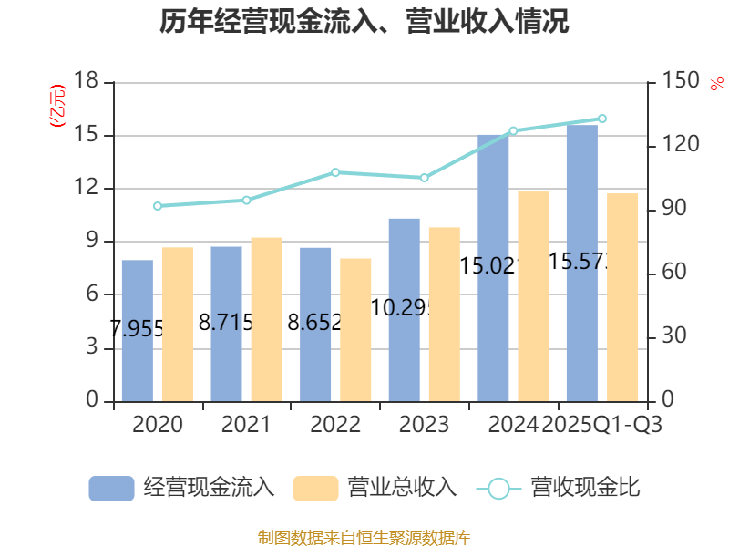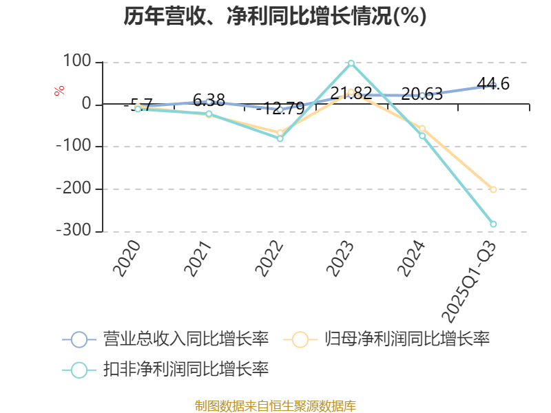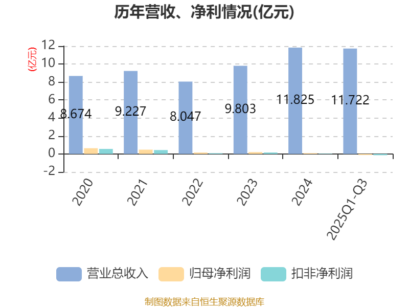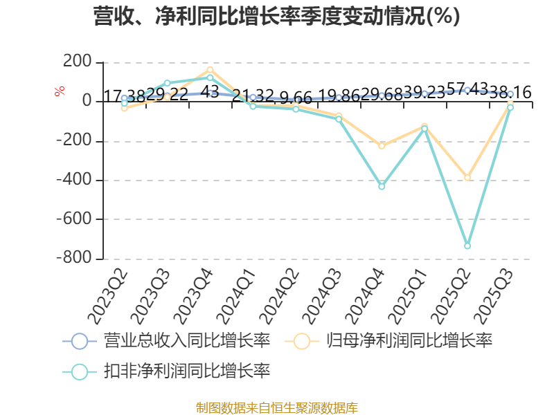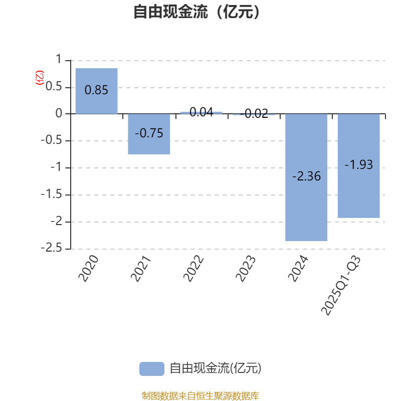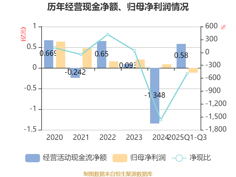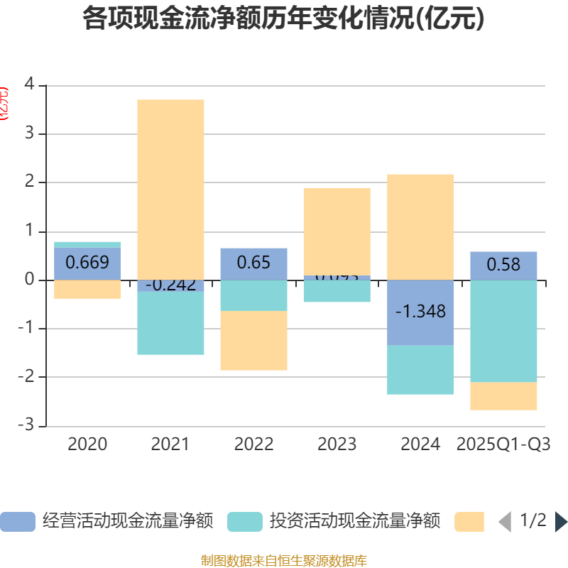 2025年前三季度,公司经营活动现金流净额为5801.89万元,同比增加2.19亿元;筹资活动现金流净额-5716.04万元,同比减少2.74亿元;投资活动现金流净额-2.1亿元,上年同期为-2.98亿元。