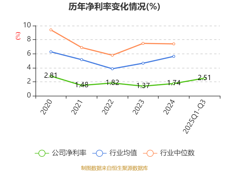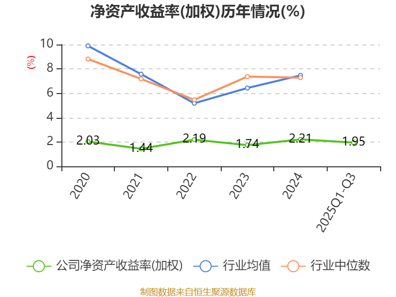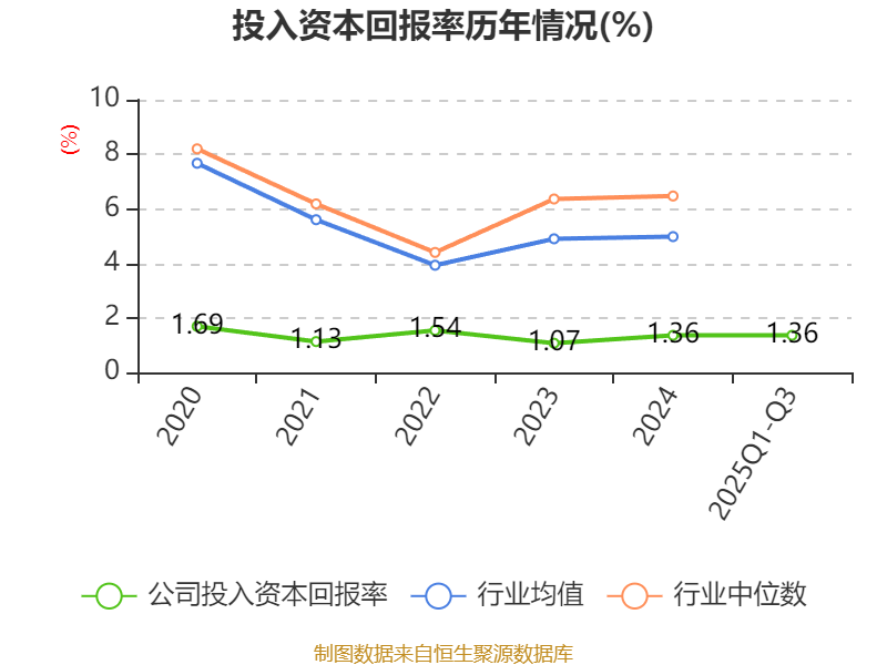 盈利能力方面, 2025年前三季度公司加权平均净资产收益率为1.95%,同比上升0.23个百分点。公司2025年前三季度投入资本回报率为1.36%,较上年同期上升0.28个百分点。
