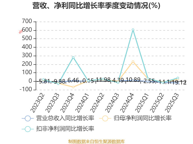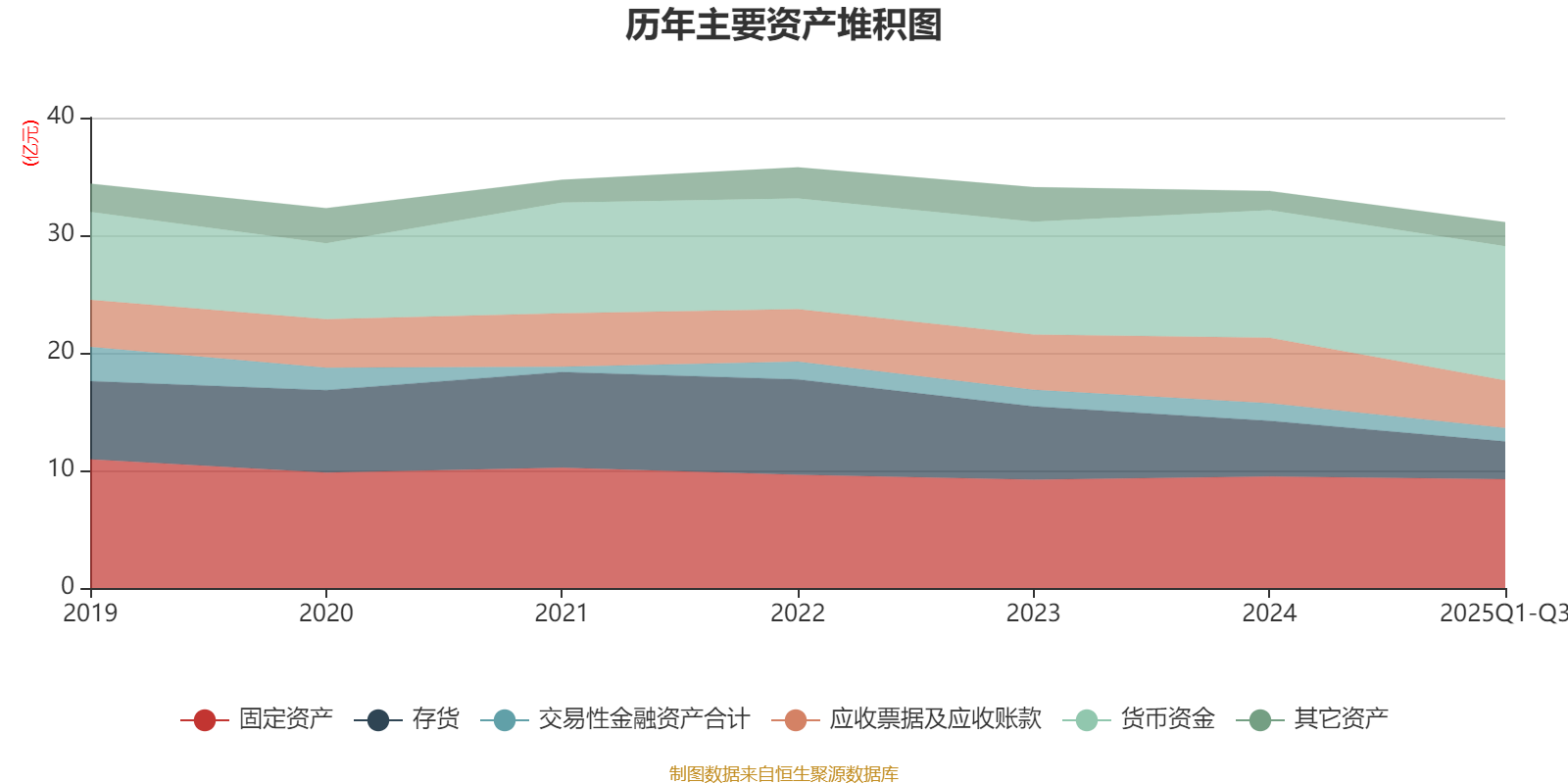 资产重大变化方面,截至2025年三季度末,公司货币资金较上年末增加5.26%,占公司总资产比重上升4.58个百分点;存货较上年末减少32.26%,占公司总资产比重下降3.71个百分点;应收票据及应收账款较上年末减少27.52%,占公司总资产比重下降3.52个百分点;固定资产较上年末减少2.4%,占公司总资产比重上升1.66个百分点。