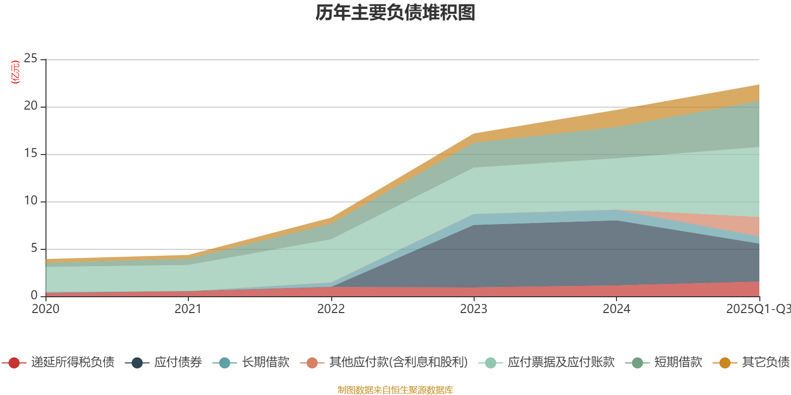 负债重大变化方面,截至2025年三季度末,公司应付债券较上年末减少41.68%,占公司总资产比重下降9.59个百分点;其他应付款(含利息和股利)较上年末增加9982.08%,占公司总资产比重上升4.84个百分点;应付票据及应付账款较上年末增加36.17%,占公司总资产比重上升2.53个百分点;短期借款较上年末增加47.32%,占公司总资产比重上升2.42个百分点。