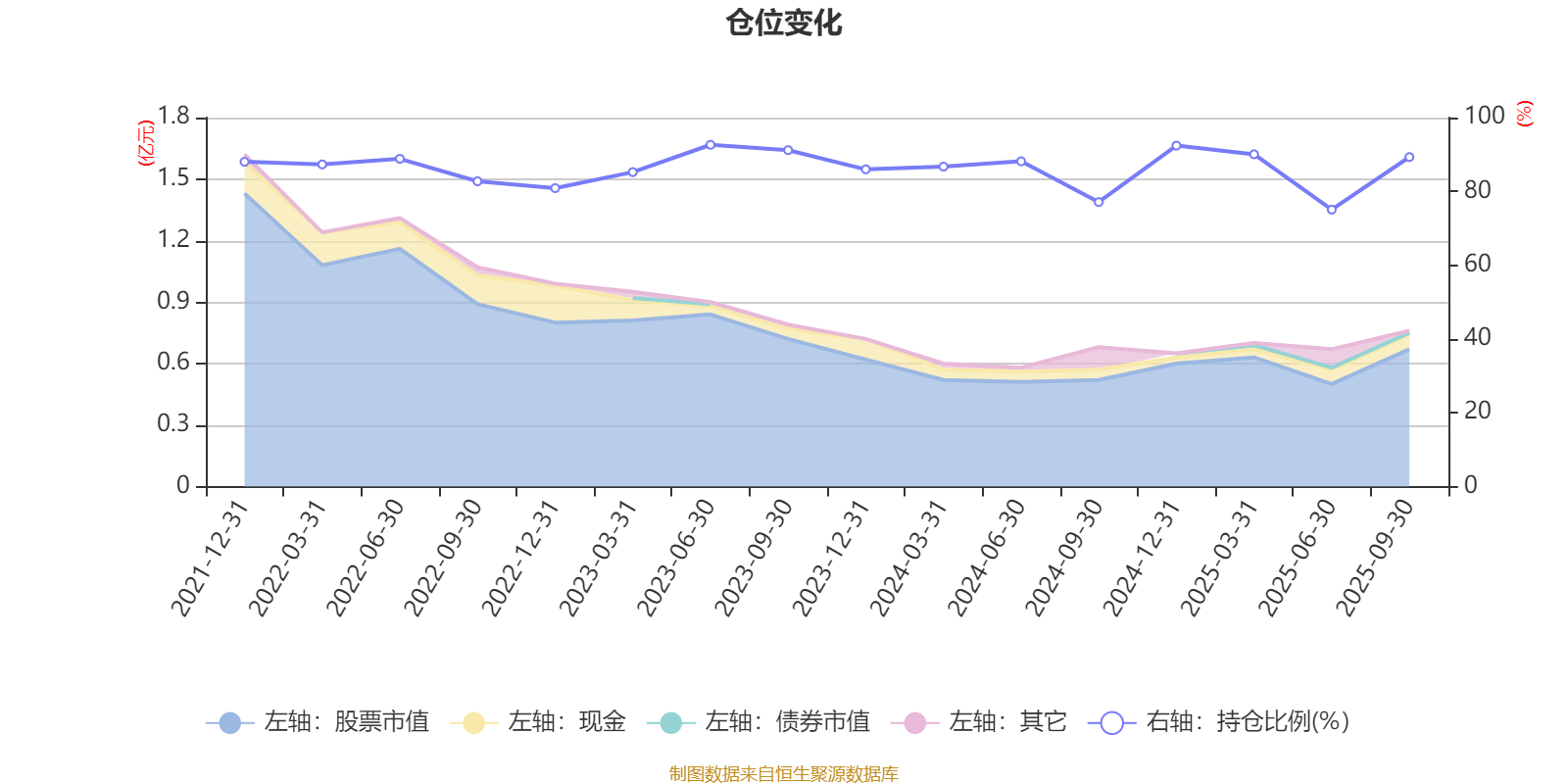 据定期报告数据统计,近三年平均股票仓位为86.23%,同类平均为83.5%。2023年上半年末基金达到92.63%的最高仓位,2025年上半年末最低,为75.06%。