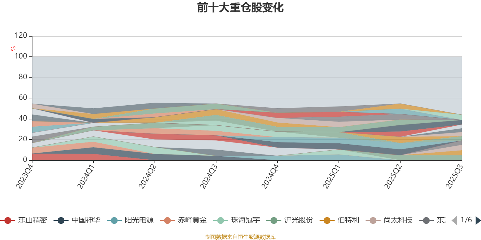 截至2025年三季度末,基金十大重仓股分别是尚太科技、信维通信、伯特利、沪光股份、三星医疗、巨星科技、东方电缆、华阳集团、寒武纪、长城汽车。