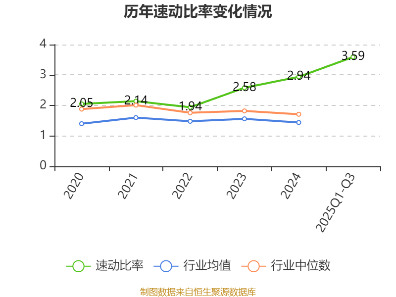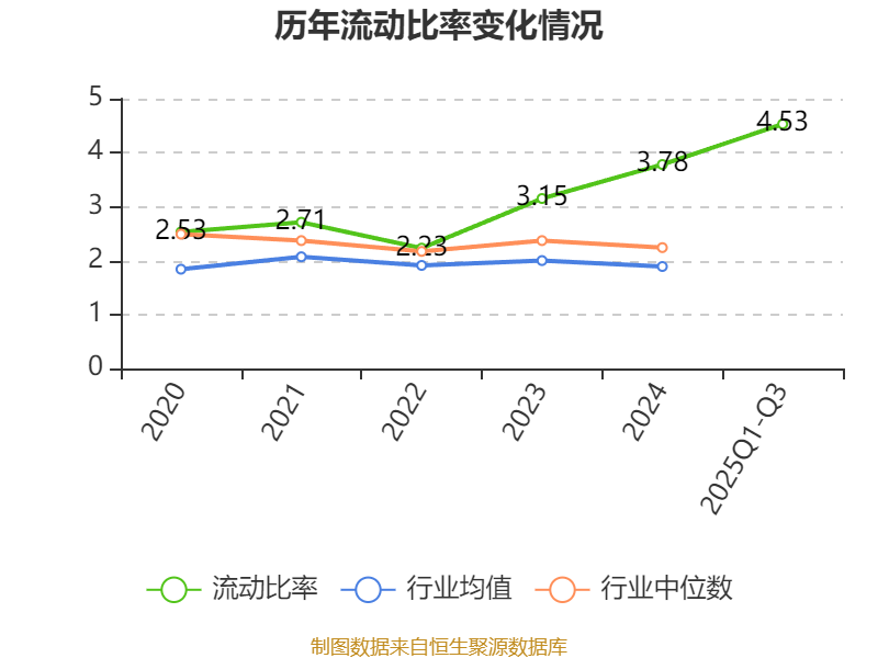 2025年前三季度,公司流动比率为4.53,速动比率为3.59。