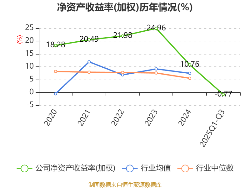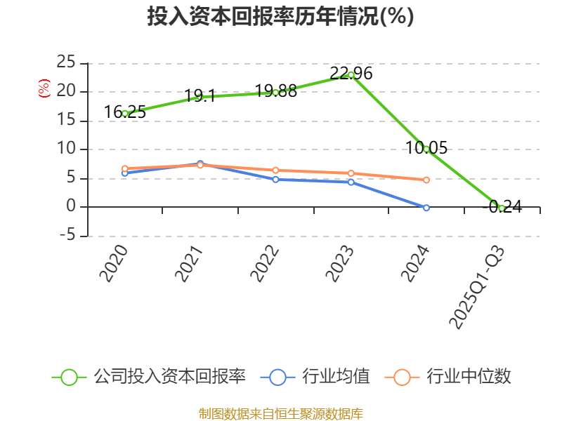 盈利能力方面, 2025年前三季度公司加权平均净资产收益率为-0.77%,同比下降13.09个百分点。公司2025年前三季度投入资本回报率为-0.24%,较上年同期下降12.3个百分点。