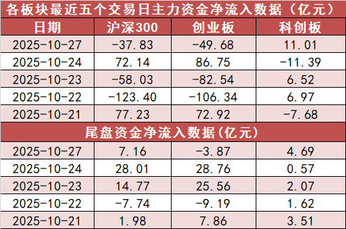 沪深300今日主力资金净流出37.83亿元,创业板净流出49.68亿元,科创板净流入11.01亿元。