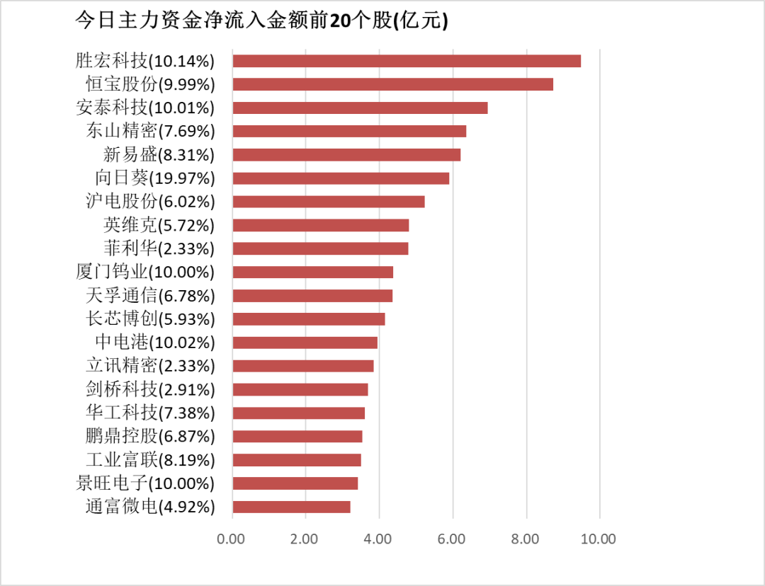 今日A股市场主力资金开盘净流出19.28亿元,尾盘净流入1.68亿元,A股市场全天主力资金净流出75.9亿元。