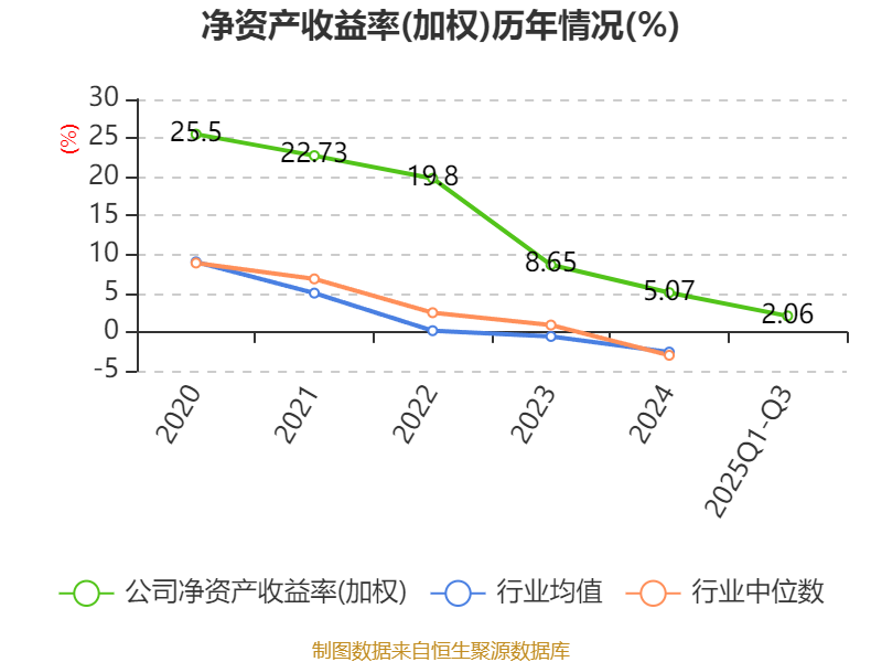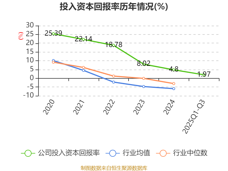 盈利能力方面, 2025年前三季度公司加权平均净资产收益率为2.06%,同比下降0.89个百分点。公司2025年前三季度投入资本回报率为1.97%,较上年同期下降0.77个百分点。