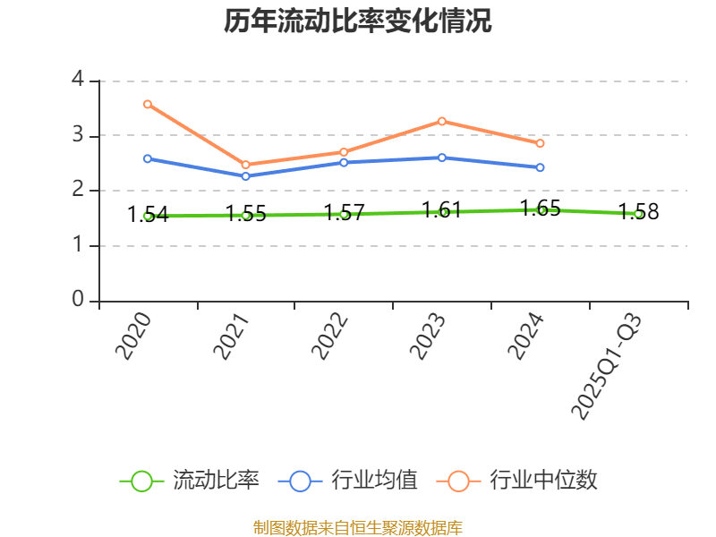 2025年前三季度,公司流动比率为1.58,速动比率为1.25。