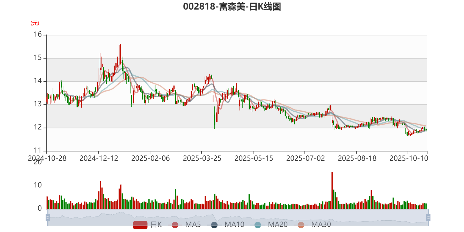 中证智能财讯富森美(002818)10月28日披露2025年第三季度报告。前三季度公司实现营业总收入9.24亿元,同比下降14.35%;归母净利润4.77亿元,同比下降12.60%;扣非净利润4.38亿元,同比下降18.97%;经营活动产生的现金流量净额为10.19亿元,同比增长15.44%;报告期内,富森美基本每股收益为0.64元,加权平均净资产收益率为8.27%。