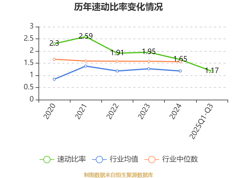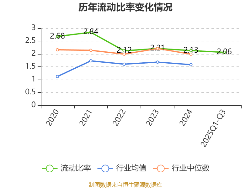 2025年前三季度,公司流动比率为2.06,速动比率为1.17。