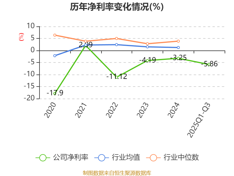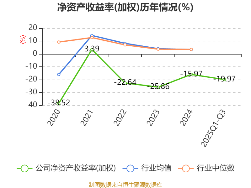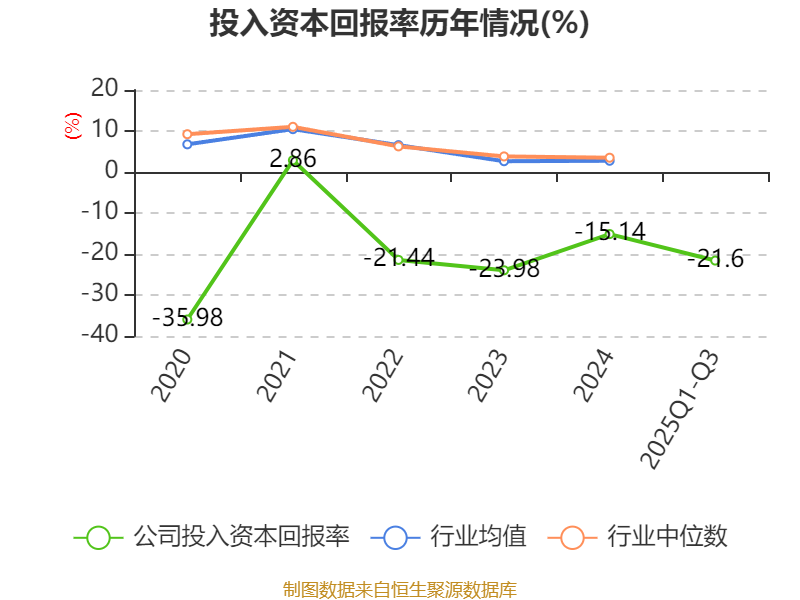 盈利能力方面, 2025年前三季度公司加权平均净资产收益率为-19.97%,同比下降2.87个百分点。公司2025年前三季度投入资本回报率为-21.6%,较上年同期下降3.79个百分点。