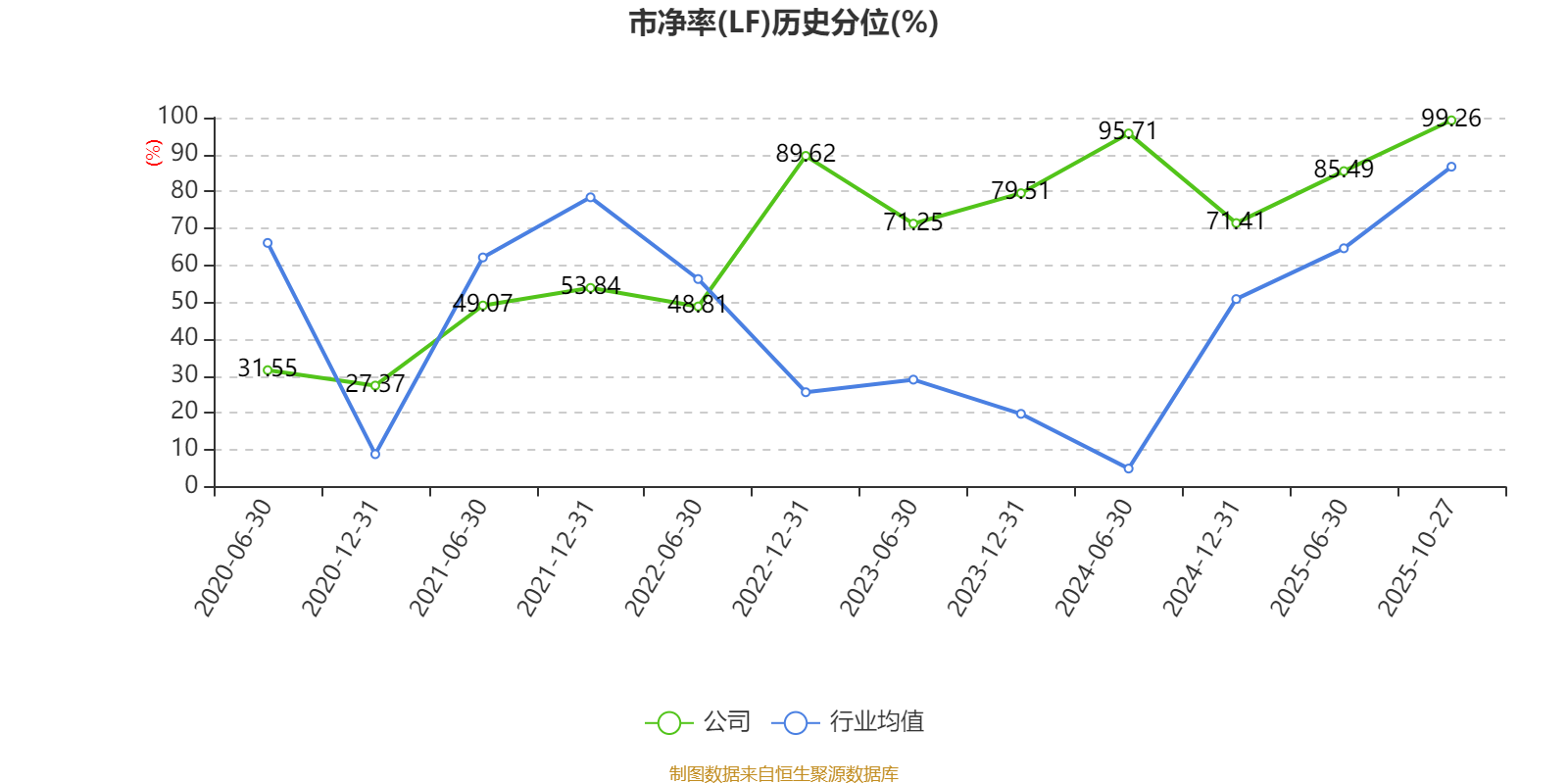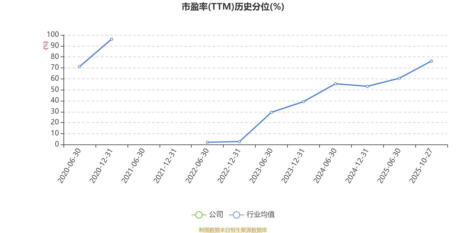 市盈率、市净率为负时,不显示当期分位数,会导致折线图中断。