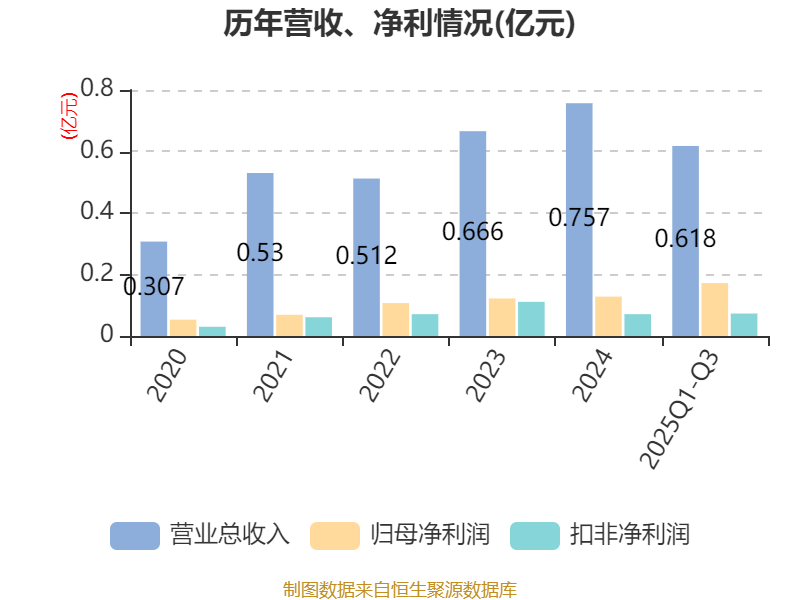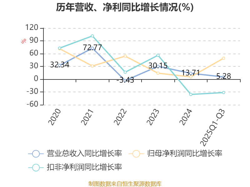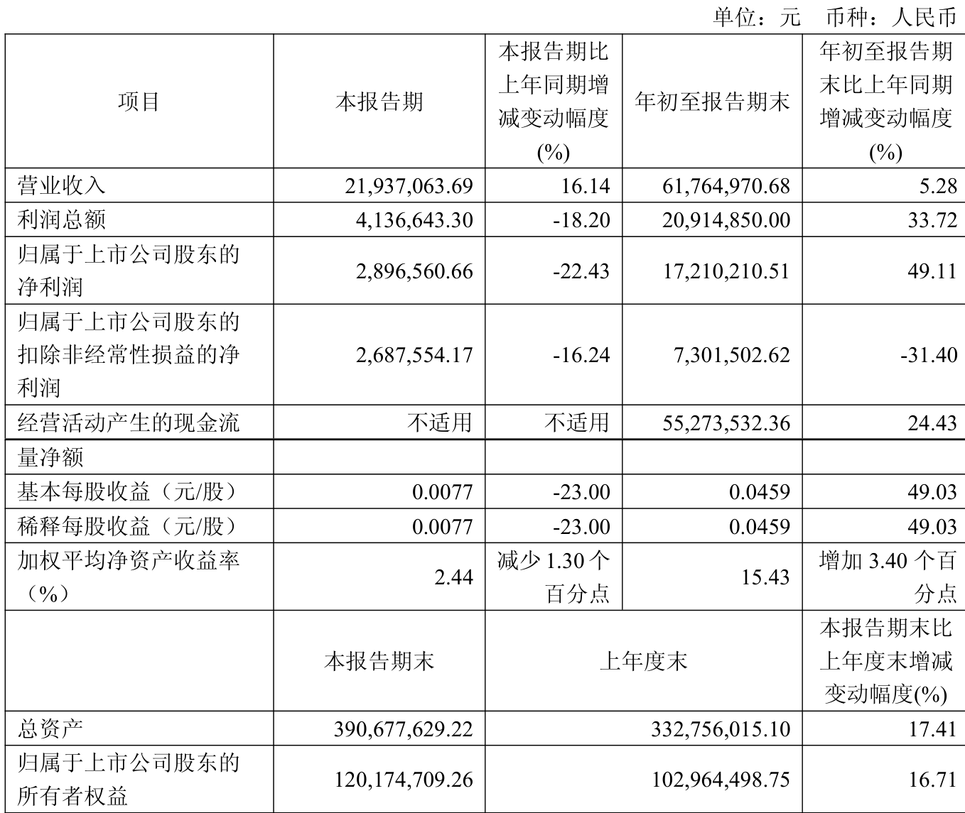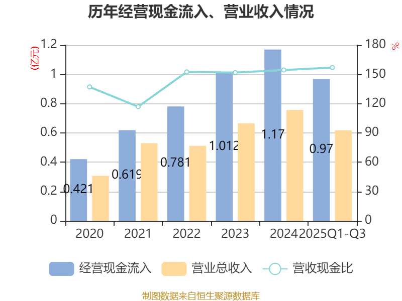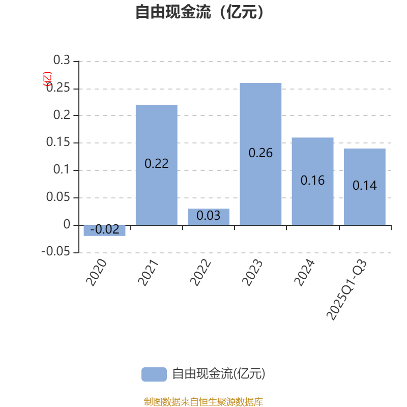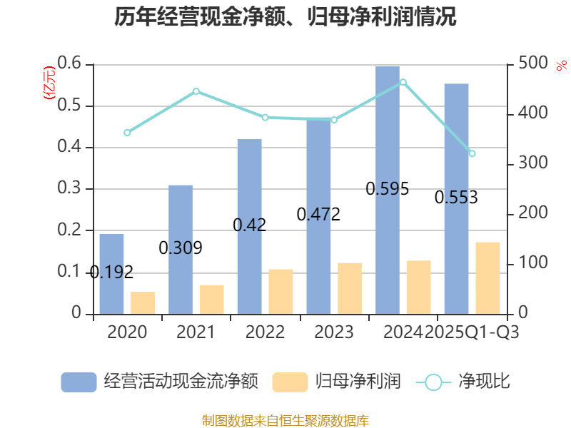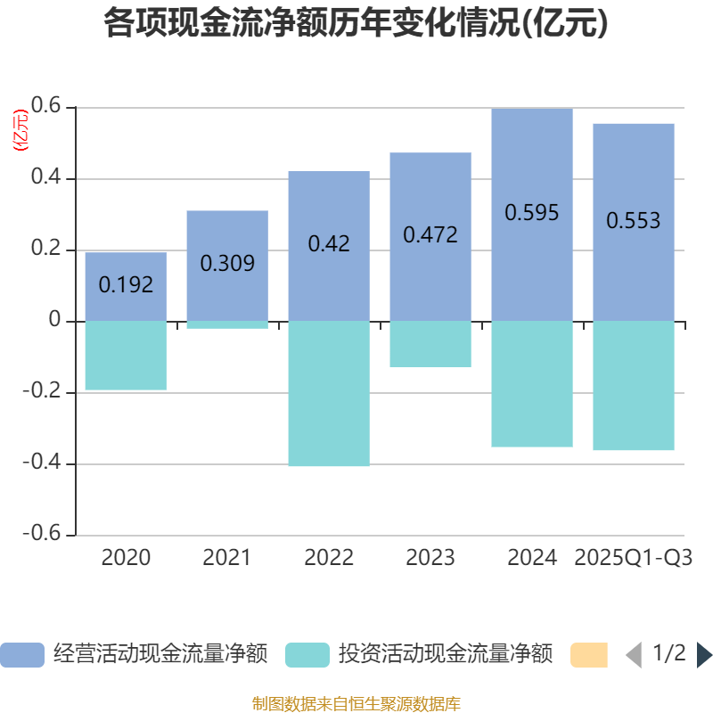 2025年前三季度,公司经营活动现金流净额为5527.35万元,同比增长24.43%;筹资活动现金流净额0元,与同期相比基本不变;投资活动现金流净额-3631.74万元,上年同期为-1449.33万元。