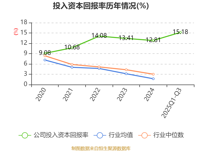 盈利能力方面, 2025年前三季度公司加权平均净资产收益率为15.43%,同比上升3.4个百分点。公司2025年前三季度投入资本回报率为15.18%,较上年同期上升4.43个百分点。