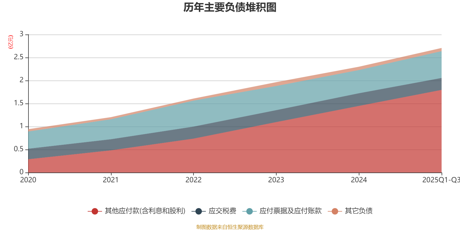 负债重大变化方面,截至2025年三季度末,公司其他应付款(含利息和股利)较上年末增加24.11%,占公司总资产比重上升2.48个百分点;应交税费较上年末减少6.2%,占公司总资产比重下降1.66个百分点;应付职工薪酬较上年末减少51.78%,占公司总资产比重下降0.33个百分点;应付票据及应付账款较上年末增加15.49%,占公司总资产比重下降0.25个百分点。