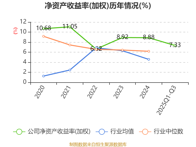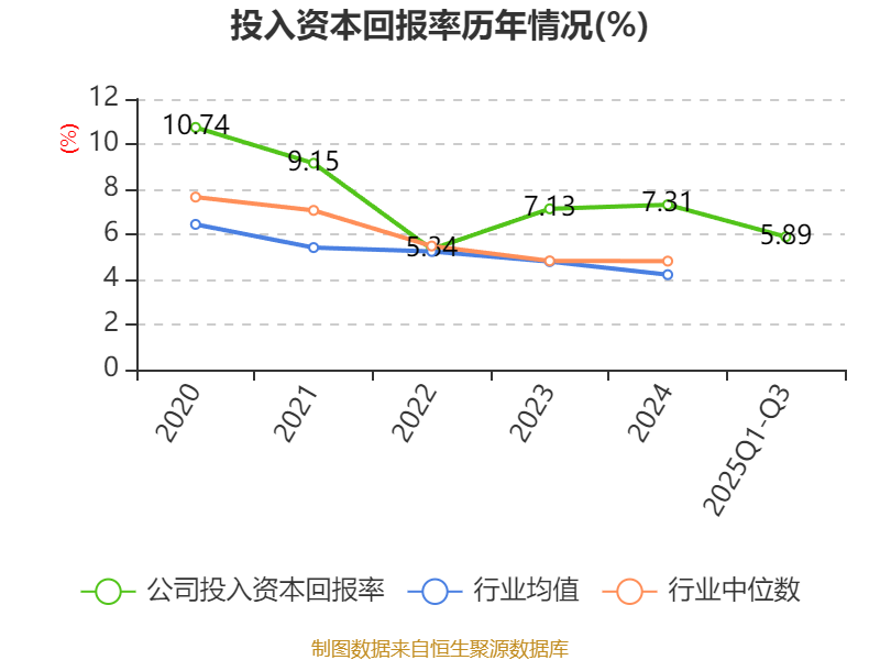 盈利能力方面, 2025年前三季度公司加权平均净资产收益率为7.33%,同比上升0.35个百分点。公司2025年前三季度投入资本回报率为5.89%,较上年同期上升0.11个百分点。