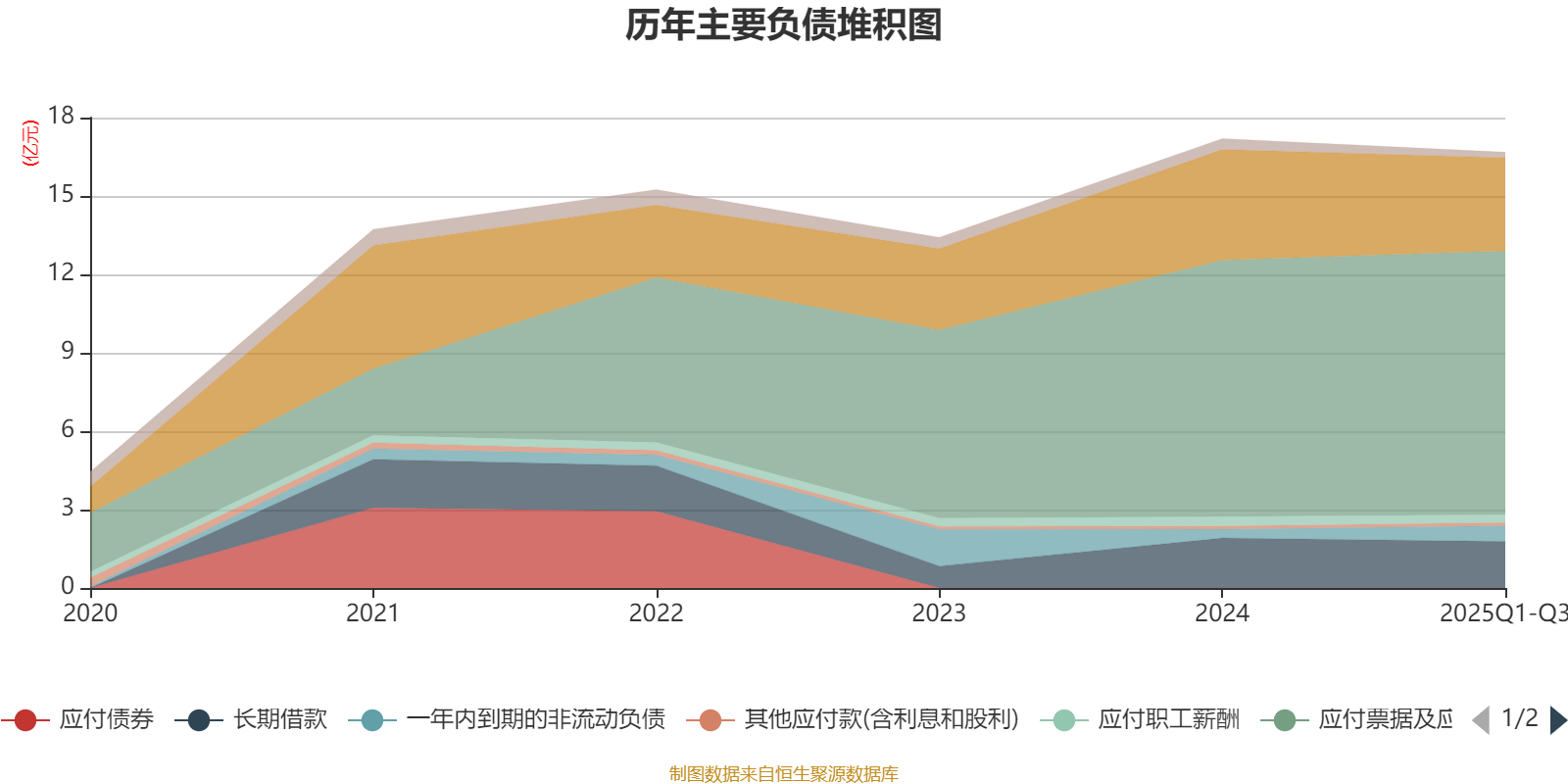 负债重大变化方面,截至2025年三季度末,公司短期借款较上年末减少15.73%,占公司总资产比重下降1.97个百分点;一年内到期的非流动负债较上年末增加77.15%,占公司总资产比重上升0.71个百分点;应付票据及应付账款较上年末增加2.83%,占公司总资产比重上升0.46个百分点;长期借款较上年末减少6.87%,占公司总资产比重下降0.42个百分点。