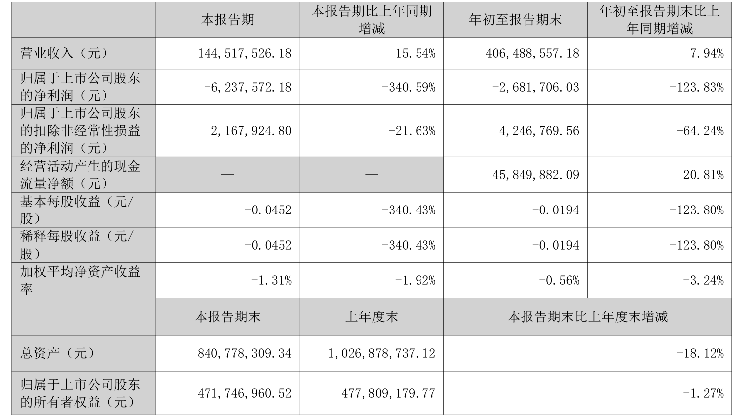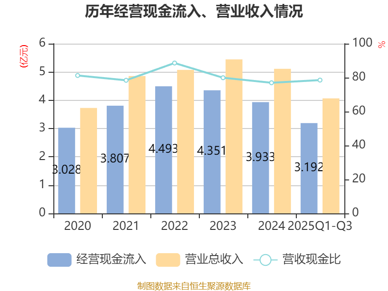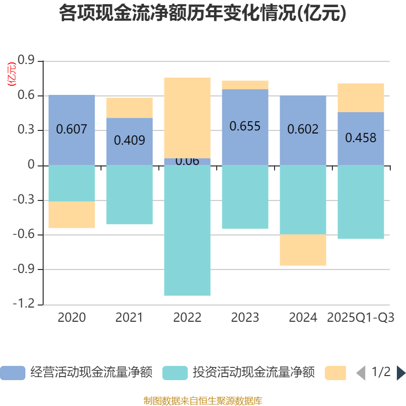 2025年前三季度,公司经营活动现金流净额为4584.99万元,同比增长20.81%;筹资活动现金流净额2476.27万元,同比增加3456.74万元;投资活动现金流净额-6343.87万元,上年同期为-4164.72万元。
