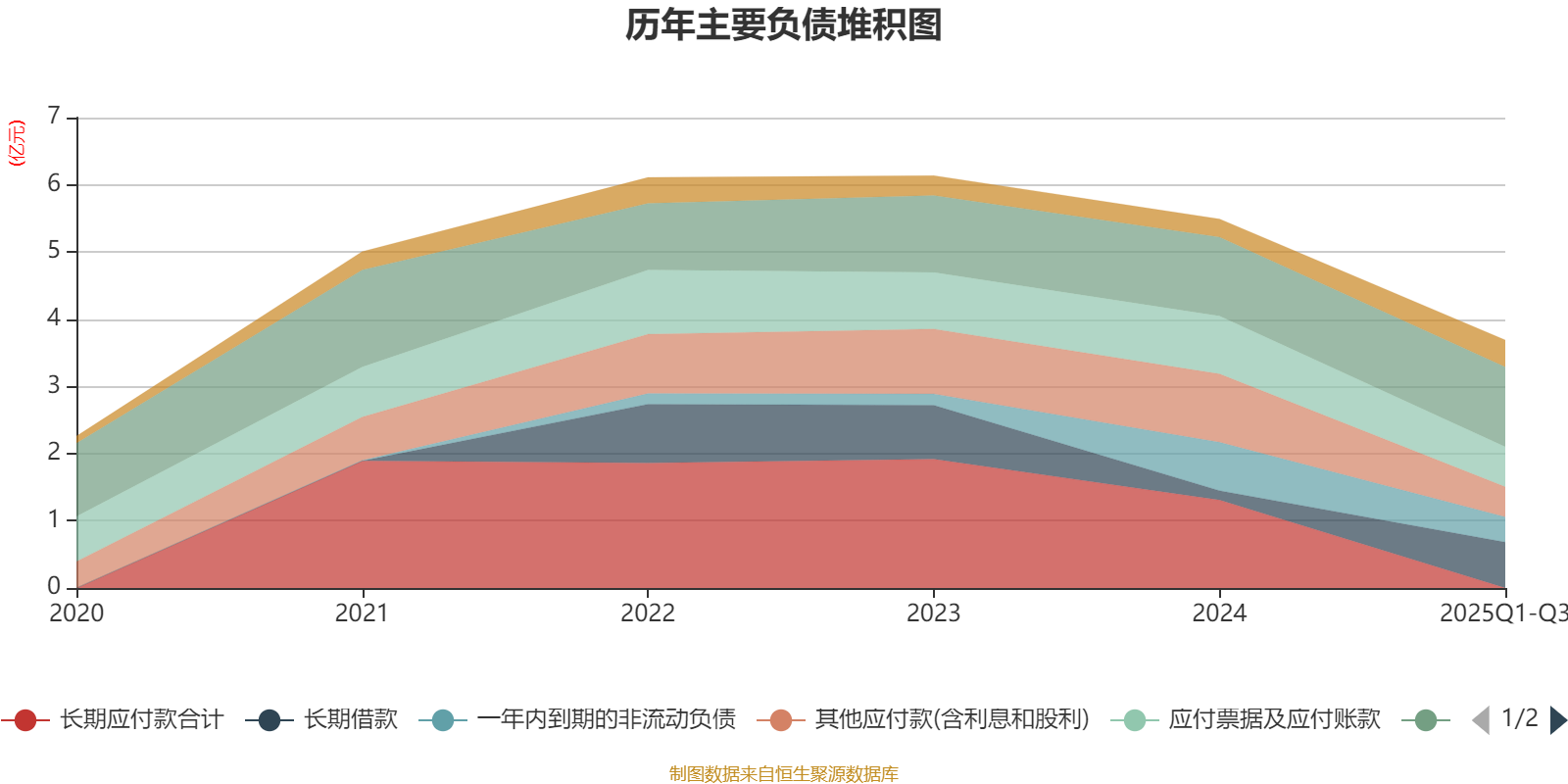 负债重大变化方面,截至2025年三季度末,公司长期应付款合计较上年末减少100%,占公司总资产比重下降12.73个百分点;长期借款较上年末增加389.69%,占公司总资产比重上升6.75个百分点;其他应付款(含利息和股利)较上年末减少55.91%,占公司总资产比重下降4.57个百分点;短期借款较上年末增加1.19%,占公司总资产比重上升2.7个百分点。