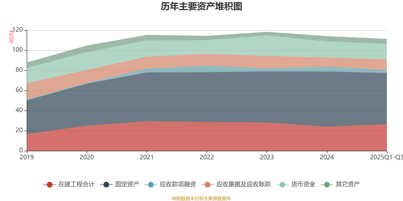 资产重大变化方面,截至2025年三季度末,公司在建工程合计较上年末增加10.37%,占公司总资产比重上升2.74个百分点;固定资产较上年末减少7.18%,占公司总资产比重下降2.39个百分点;应收款项融资较上年末减少43.52%,占公司总资产比重下降1.85个百分点;应收票据及应收账款较上年末增加19.75%,占公司总资产比重上升1.76个百分点。