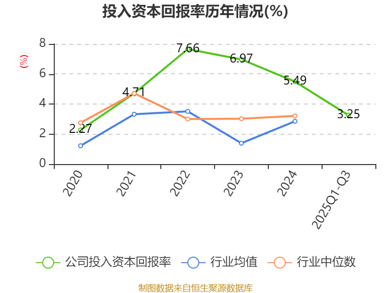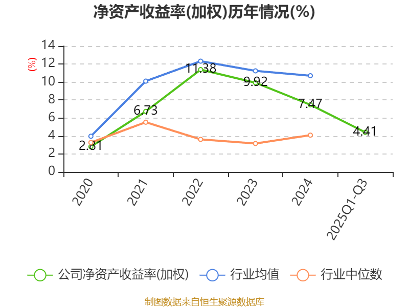 盈利能力方面, 2025年前三季度公司加权平均净资产收益率为4.41%,同比下降0.81个百分点。公司2025年前三季度投入资本回报率为3.25%,较上年同期下降0.57个百分点。