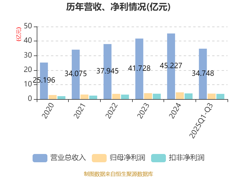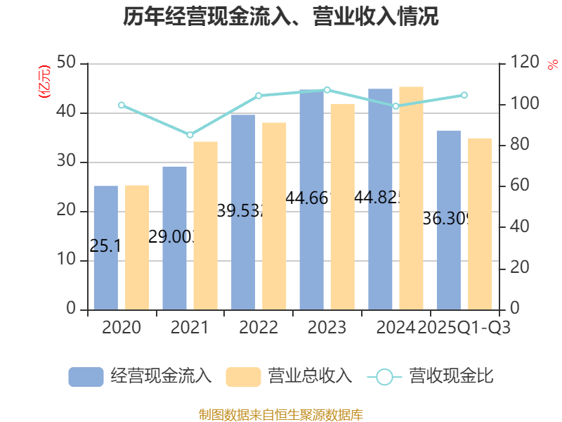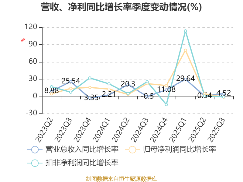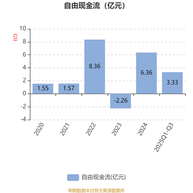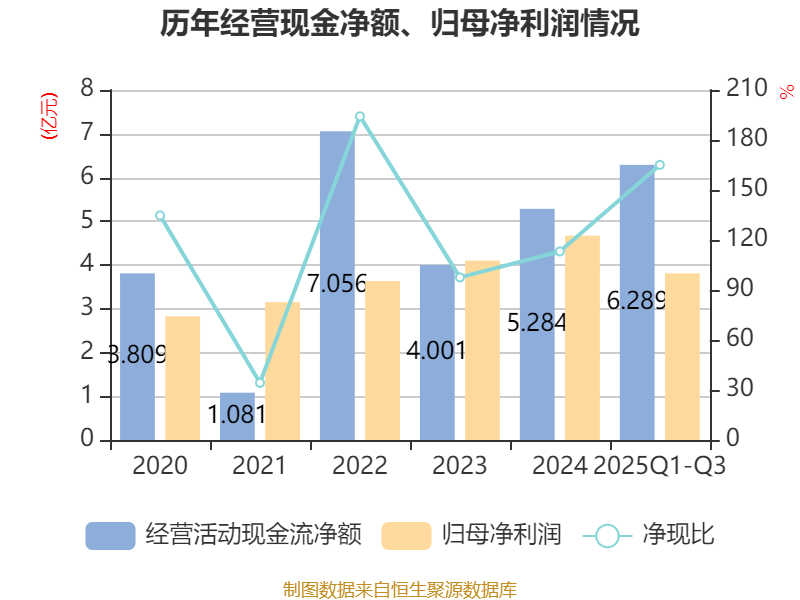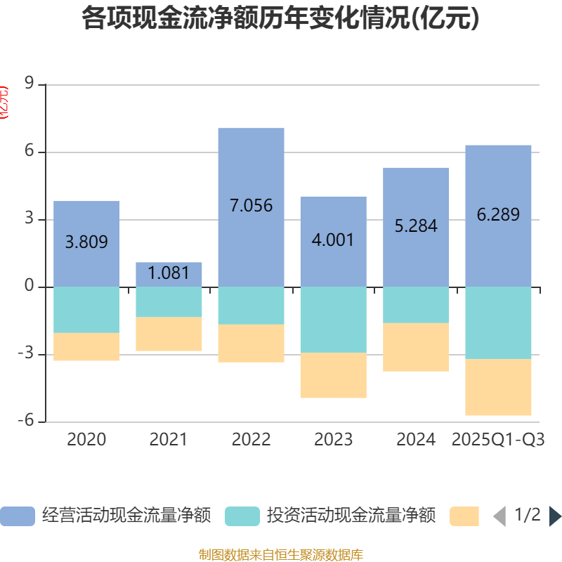 2025年前三季度,公司经营活动现金流净额为6.29亿元,同比增长890.47%;筹资活动现金流净额-2.51亿元,同比减少4778.99万元;投资活动现金流净额-3.23亿元,上年同期为1.28亿元。