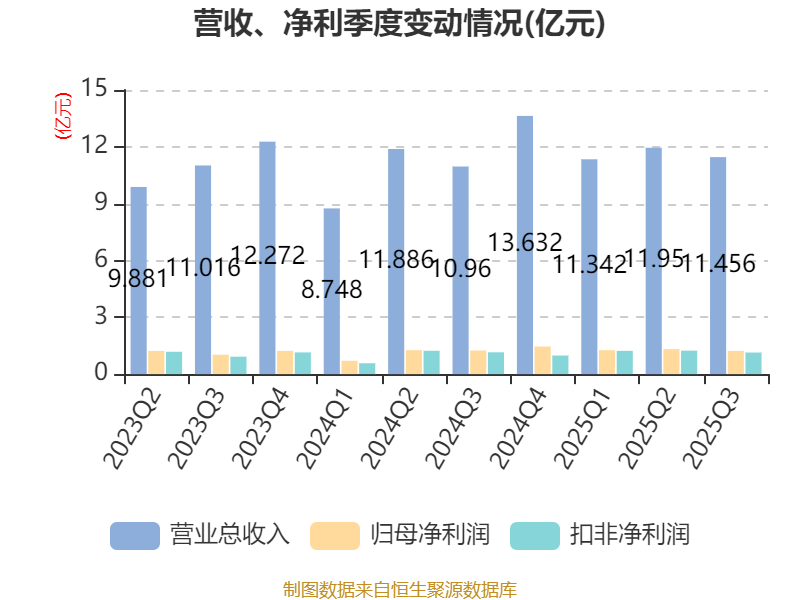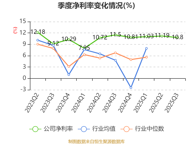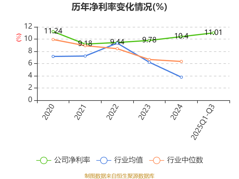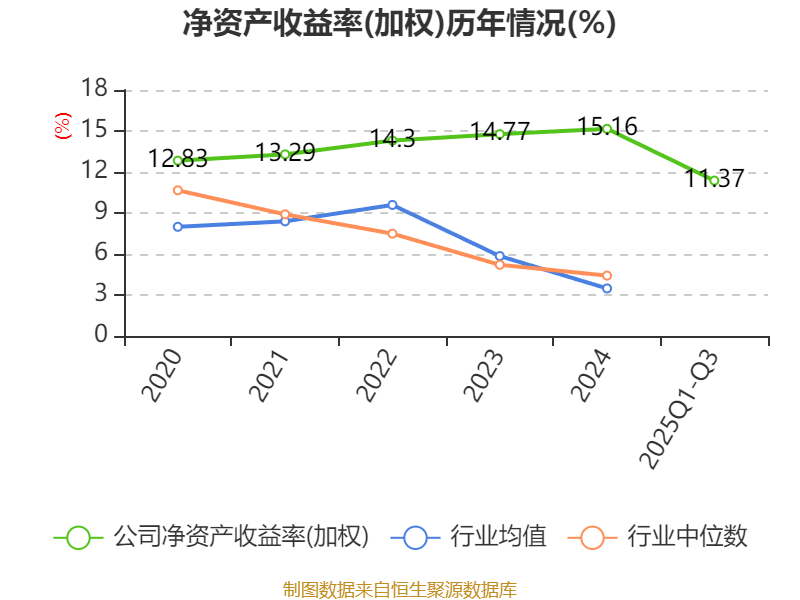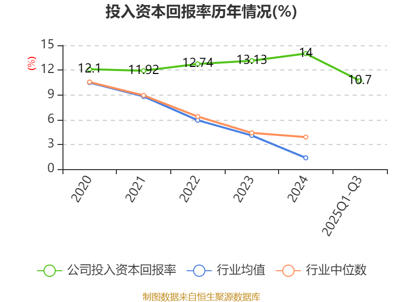 盈利能力方面, 2025年前三季度公司加权平均净资产收益率为11.37%,同比上升0.79个百分点。公司2025年前三季度投入资本回报率为10.7%,较上年同期上升0.86个百分点。