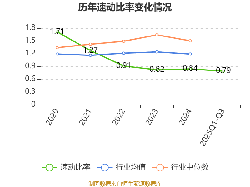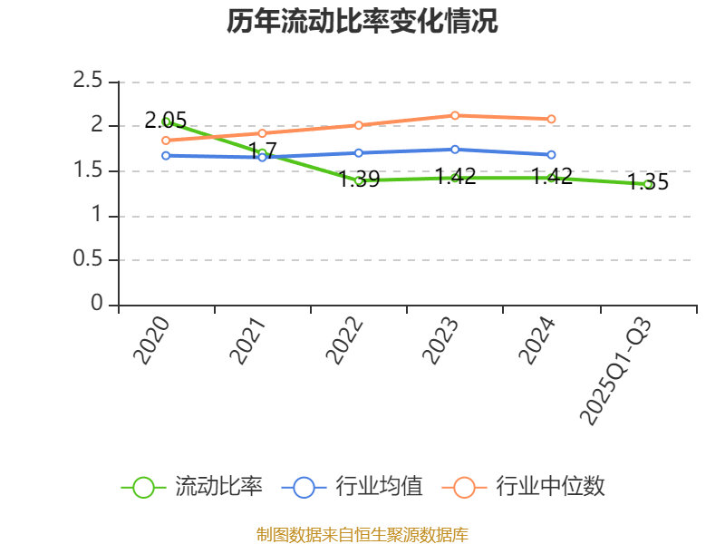 2025年前三季度,公司流动比率为1.35,速动比率为0.79。