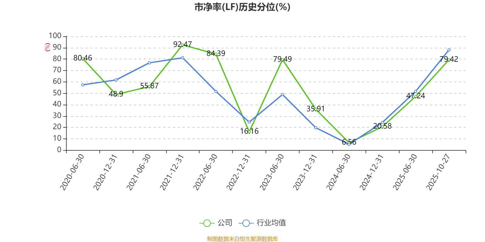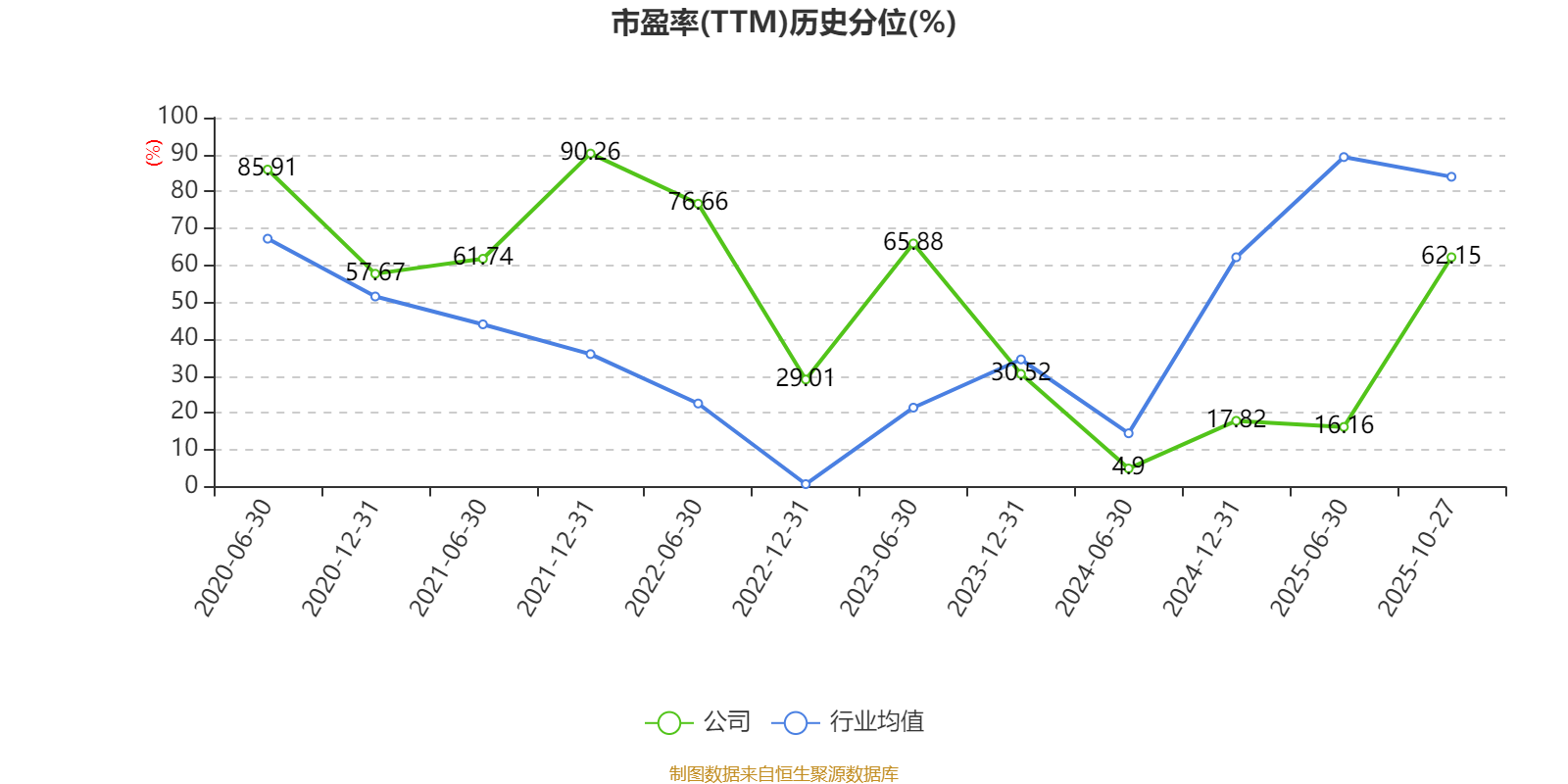 市盈率、市净率为负时,不显示当期分位数,会导致折线图中断。