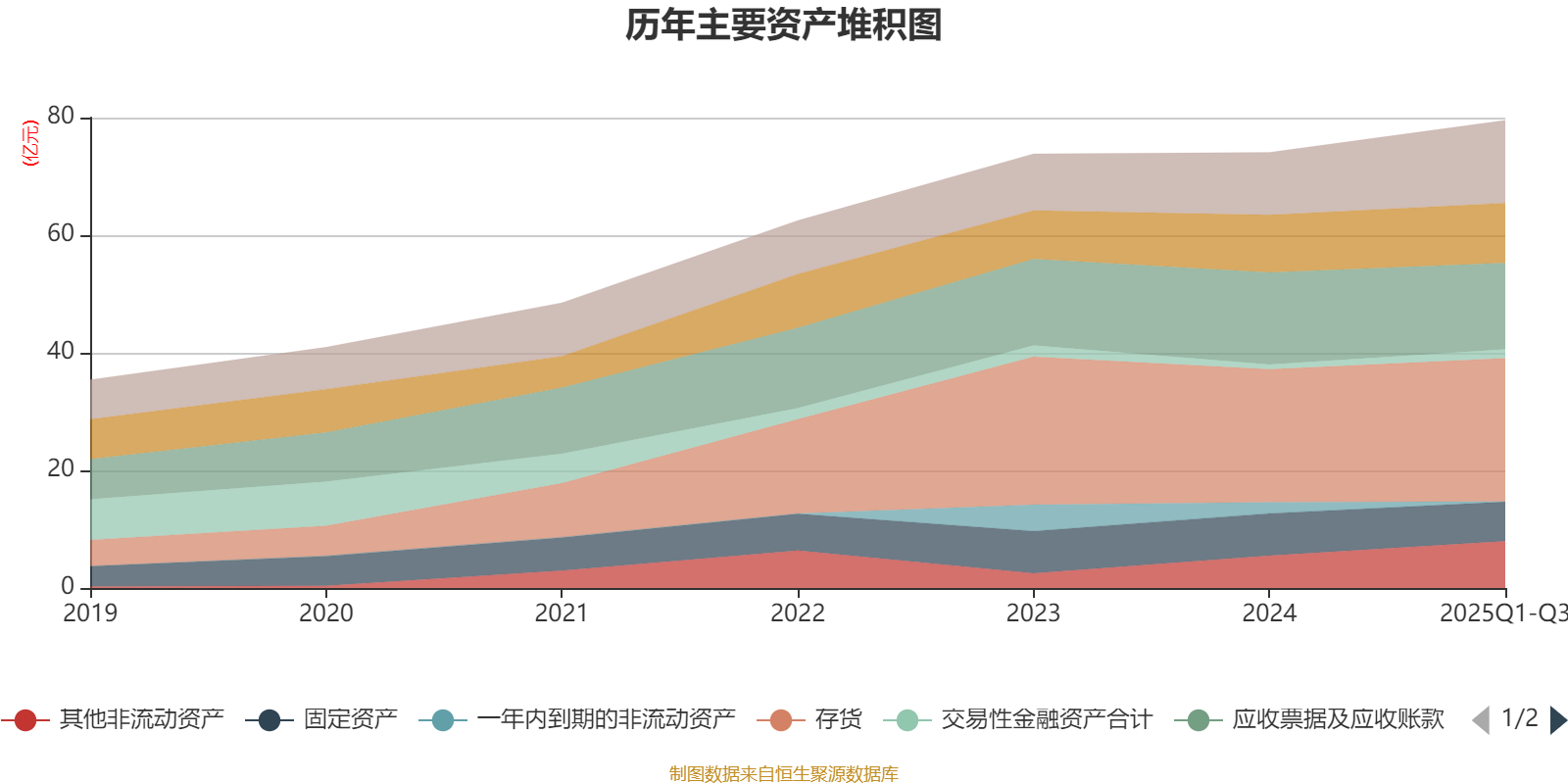 资产重大变化方面,截至2025年三季度末,公司应收票据及应收账款较上年末减少5.99%,占公司总资产比重下降2.63个百分点;其他非流动资产较上年末增加44.5%,占公司总资产比重上升2.58个百分点;一年内到期的非流动资产较上年末减少96.5%,占公司总资产比重下降2.48个百分点;预付款项较上年末增加88.15%,占公司总资产比重上升1.73个百分点。