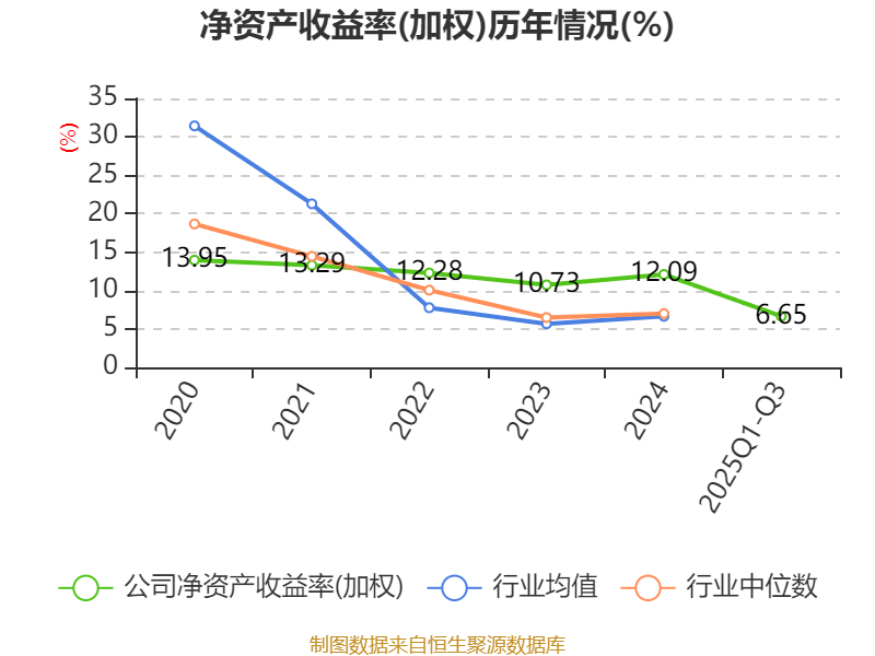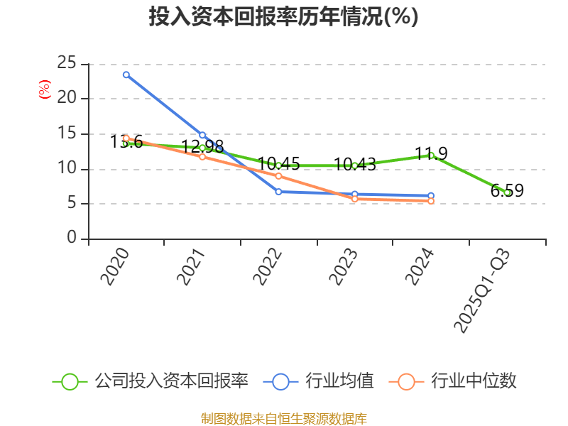 盈利能力方面, 2025年前三季度公司加权平均净资产收益率为6.65%,同比下降2.72个百分点。公司2025年前三季度投入资本回报率为6.59%,较上年同期下降2.61个百分点。