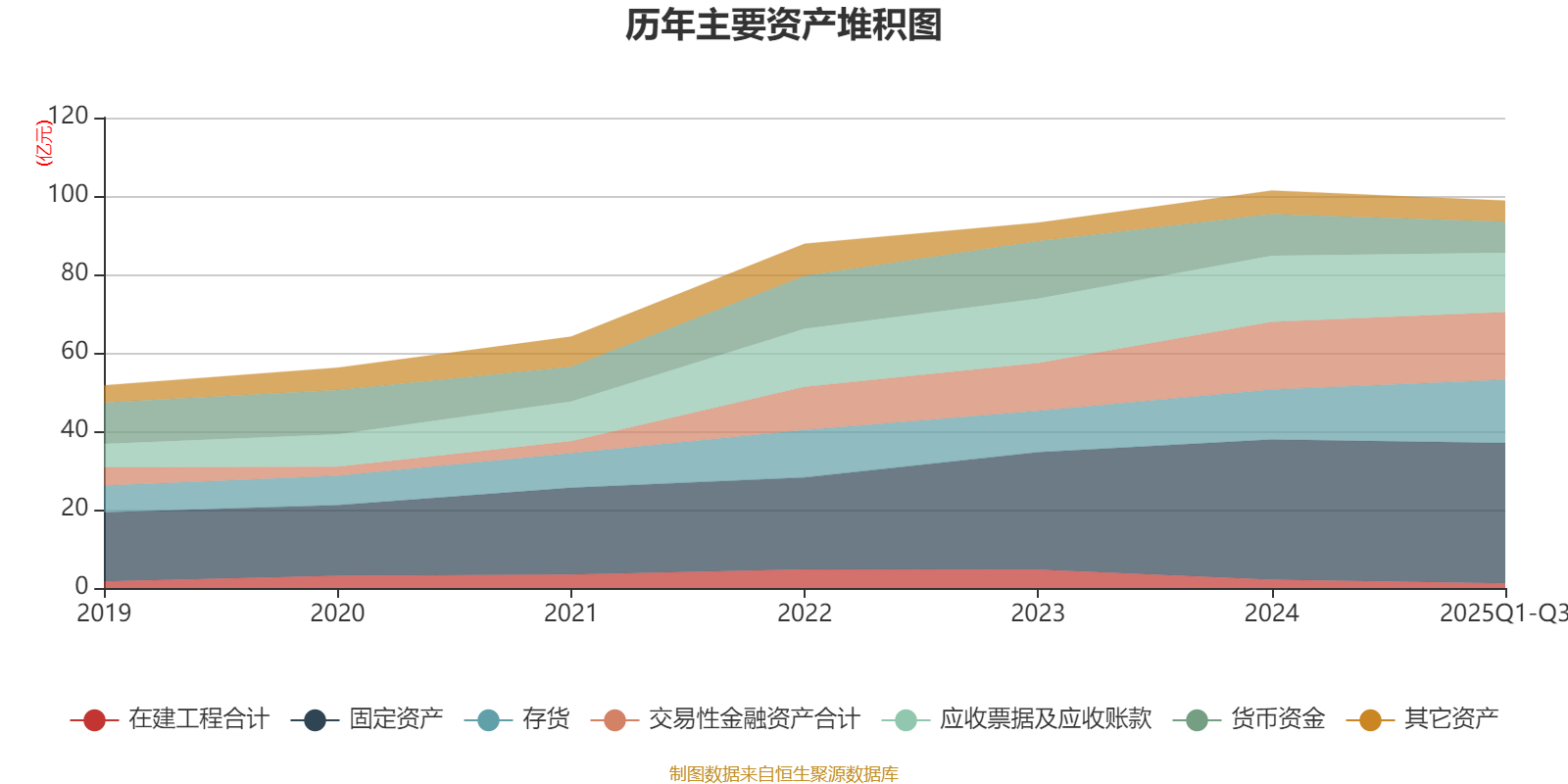 资产重大变化方面,截至2025年三季度末,公司存货较上年末增加26.38%,占公司总资产比重上升3.74个百分点;货币资金较上年末减少25.41%,占公司总资产比重下降2.47个百分点;应收票据及应收账款较上年末减少10%,占公司总资产比重下降1.27个百分点;固定资产较上年末增加0.17%,占公司总资产比重上升0.98个百分点。