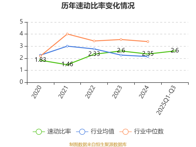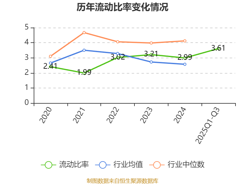 2025年前三季度,公司流动比率为3.61,速动比率为2.6。