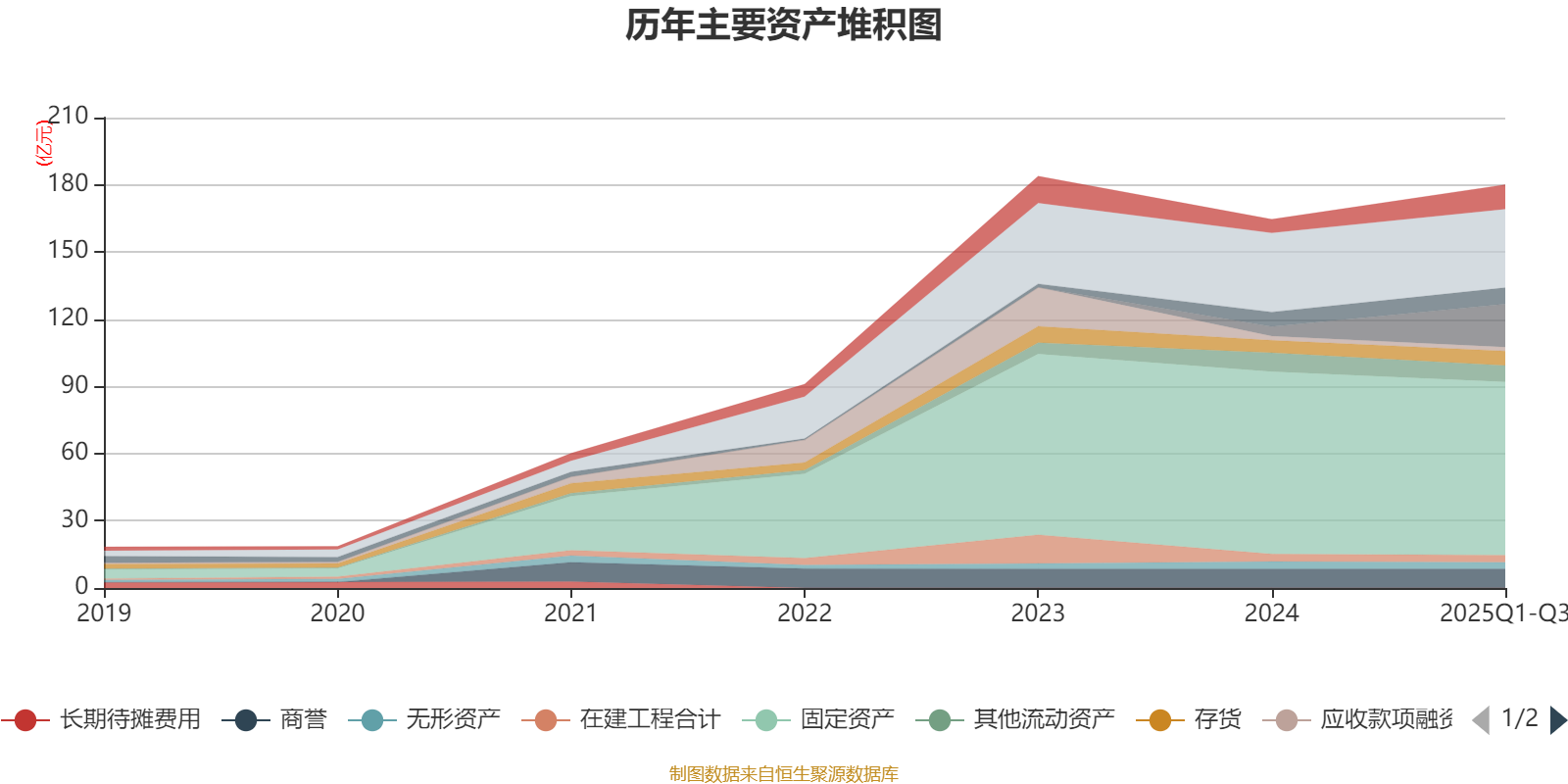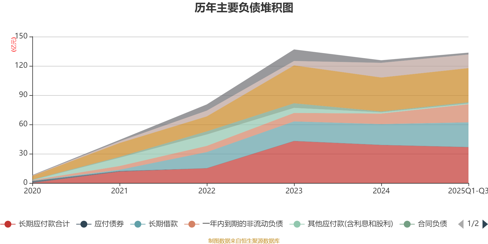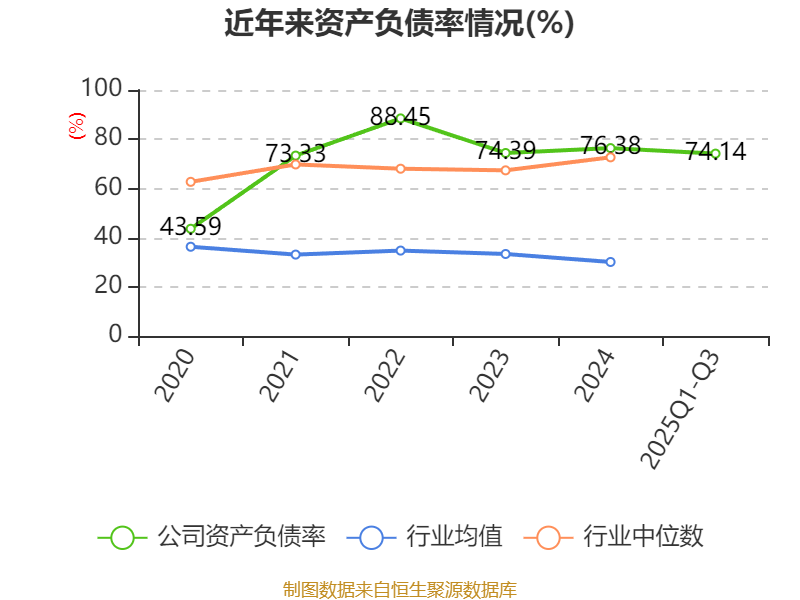 负债重大变化方面,截至2025年三季度末,公司一年内到期的非流动负债较上年末增加71.06%,占公司总资产比重上升3.69个百分点;长期应付款合计较上年末减少5.73%,占公司总资产比重下降3.27个百分点;应付票据及应付账款较上年末增加0.7%,占公司总资产比重下降1.68个百分点;短期借款较上年末减少7.29%,占公司总资产比重下降1.4个百分点。