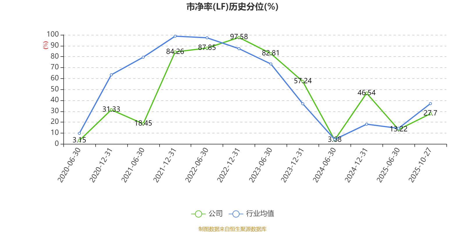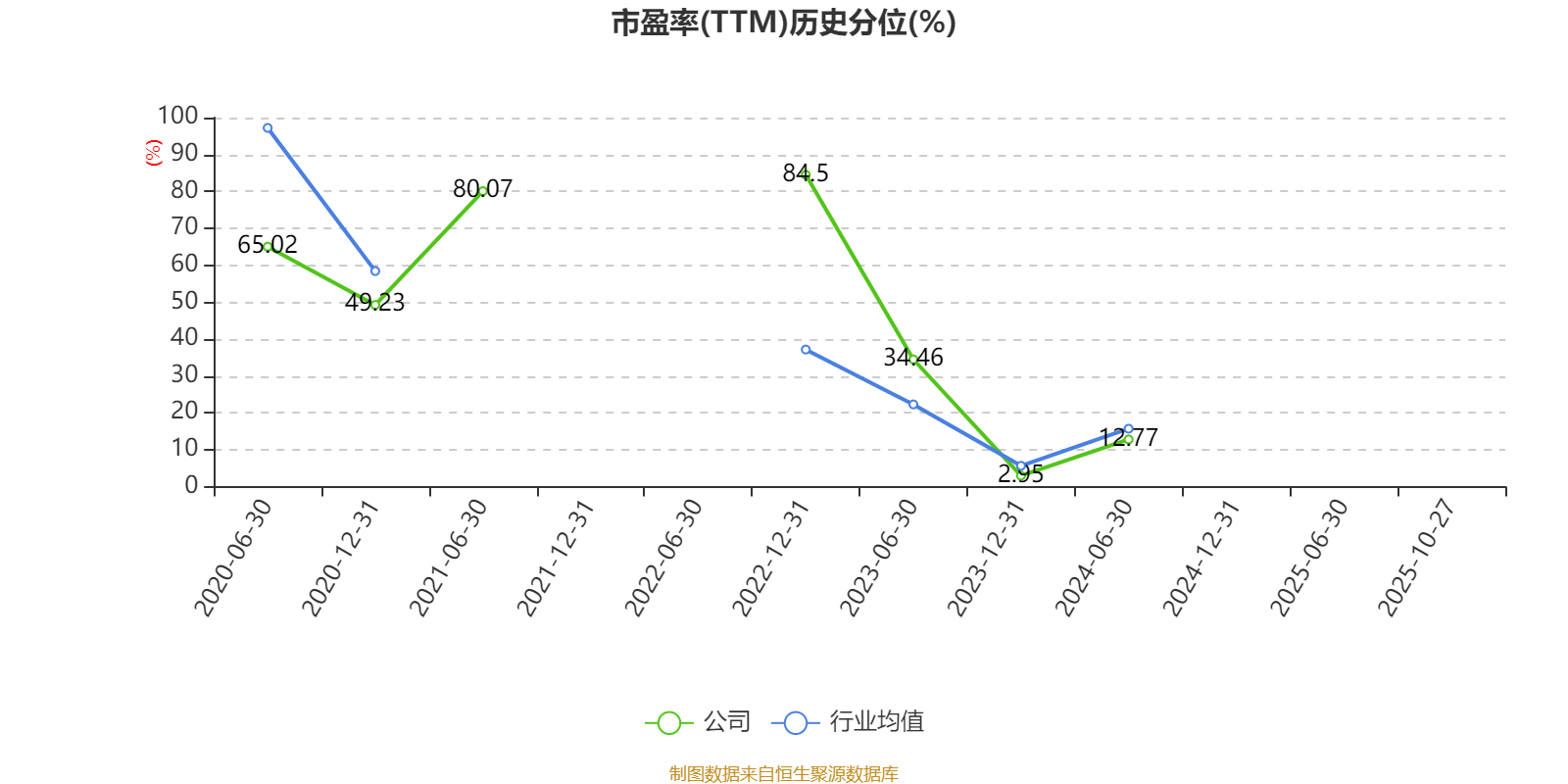 市盈率、市净率为负时,不显示当期分位数,会导致折线图中断。