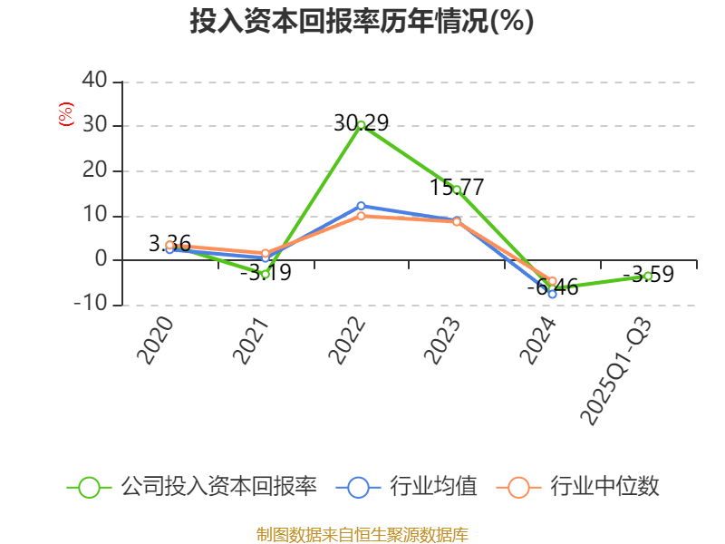 盈利能力方面, 2025年前三季度公司加权平均净资产收益率为-9.95%,同比下降0.4个百分点。公司2025年前三季度投入资本回报率为-3.59%,较上年同期上升1.47个百分点。