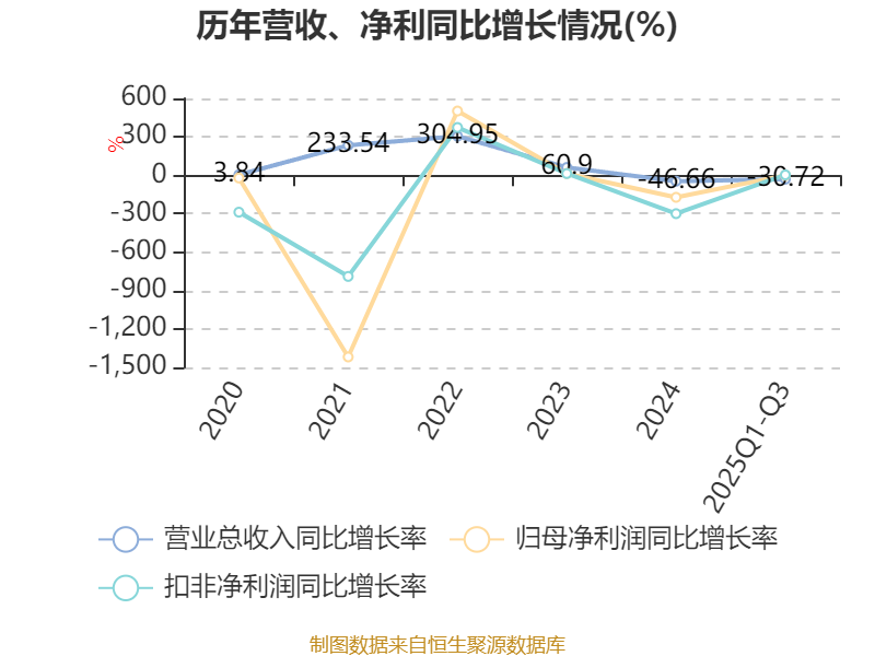 资产重大变化方面,截至2025年三季度末,公司交易性金融资产合计较上年末增加346.97%,占公司总资产比重上升8.07个百分点;固定资产较上年末减少5.03%,占公司总资产比重下降6.53个百分点;货币资金较上年末减少0.87%,占公司总资产比重下降2.01个百分点;预付款项较上年末增加273.93%,占公司总资产比重上升1.33个百分点。