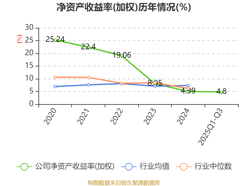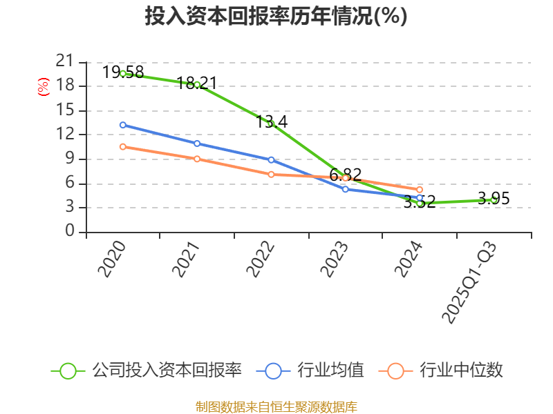 盈利能力方面, 2025年前三季度公司加权平均净资产收益率为4.8%,同比上升0.43个百分点。公司2025年前三季度投入资本回报率为3.95%,较上年同期上升0.49个百分点。