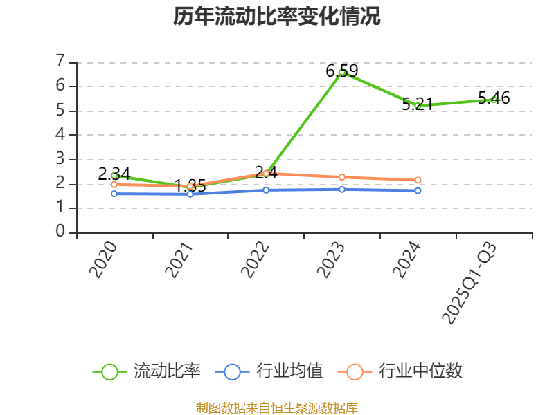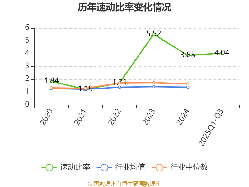 2025年前三季度,公司流动比率为5.46,速动比率为4.04。