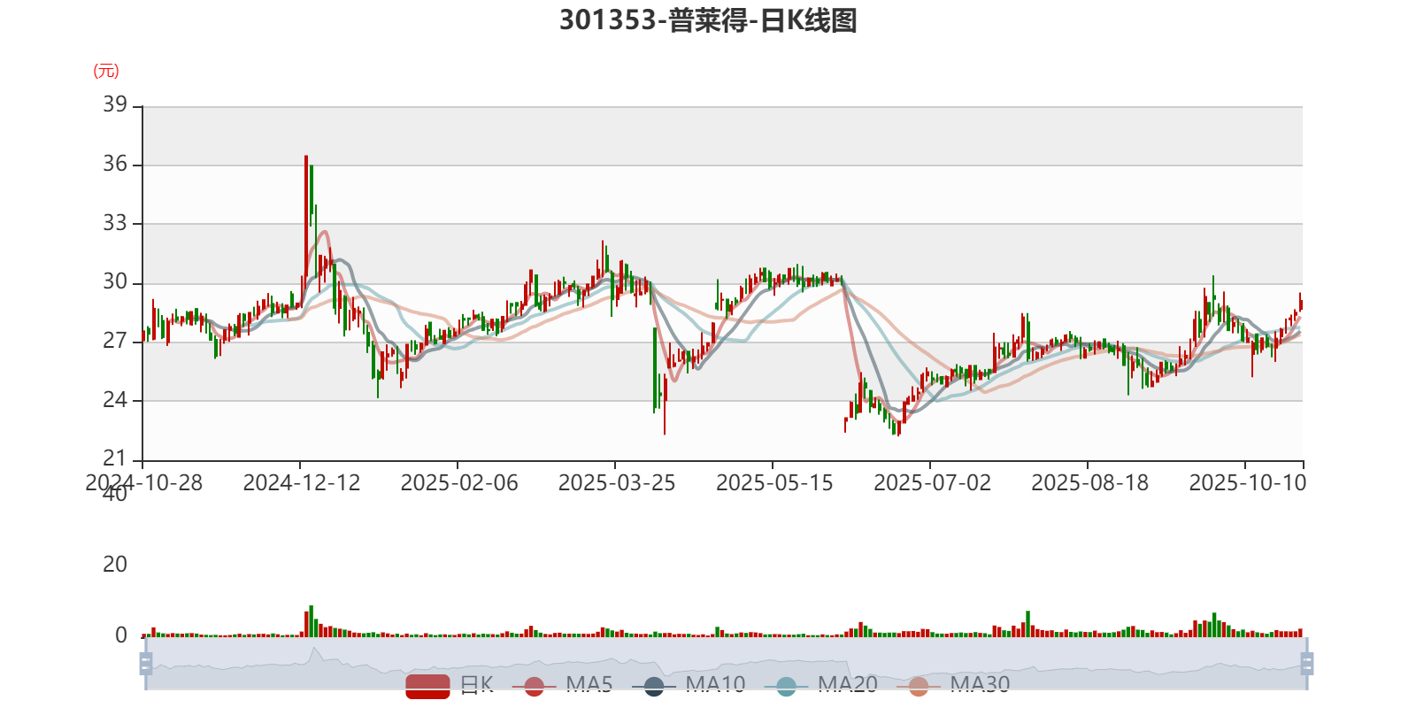 以10月27日收盘价计算,普莱得目前市盈率(TTM)约为41.35倍,市净率(LF)约2.21倍,市销率(TTM)约3.1倍。