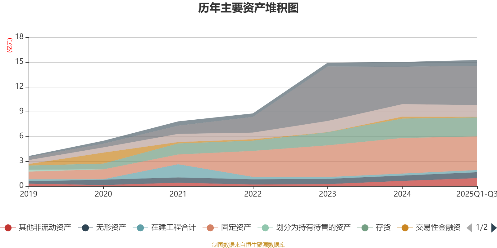 资产重大变化方面,截至2025年三季度末,公司其他非流动资产较上年末增加53.27%,占公司总资产比重上升2.1个百分点;固定资产较上年末减少5.55%,占公司总资产比重下降2.01个百分点;货币资金较上年末增加5.17%,占公司总资产比重上升1.08个百分点;交易性金融资产合计较上年末减少69.6%,占公司总资产比重下降1.08个百分点。