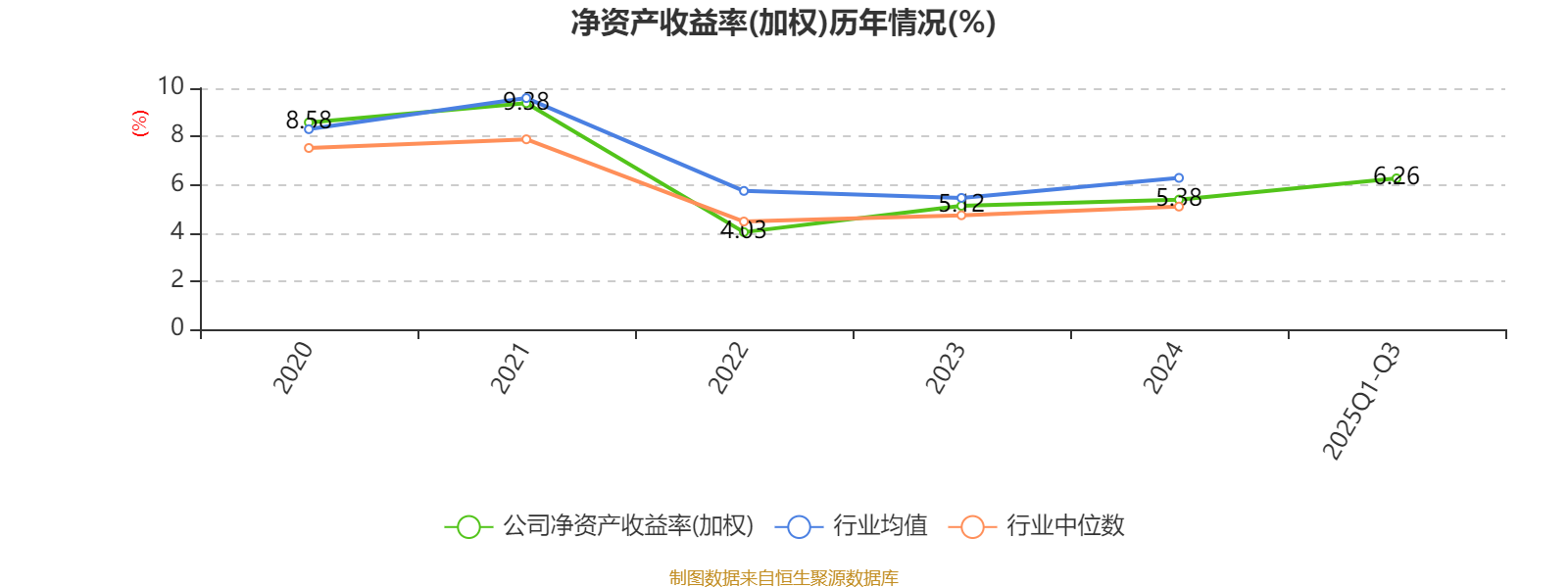盈利能力方面, 2025年前三季度公司加权平均净资产收益率为6.26%,同比上升2.49个百分点。