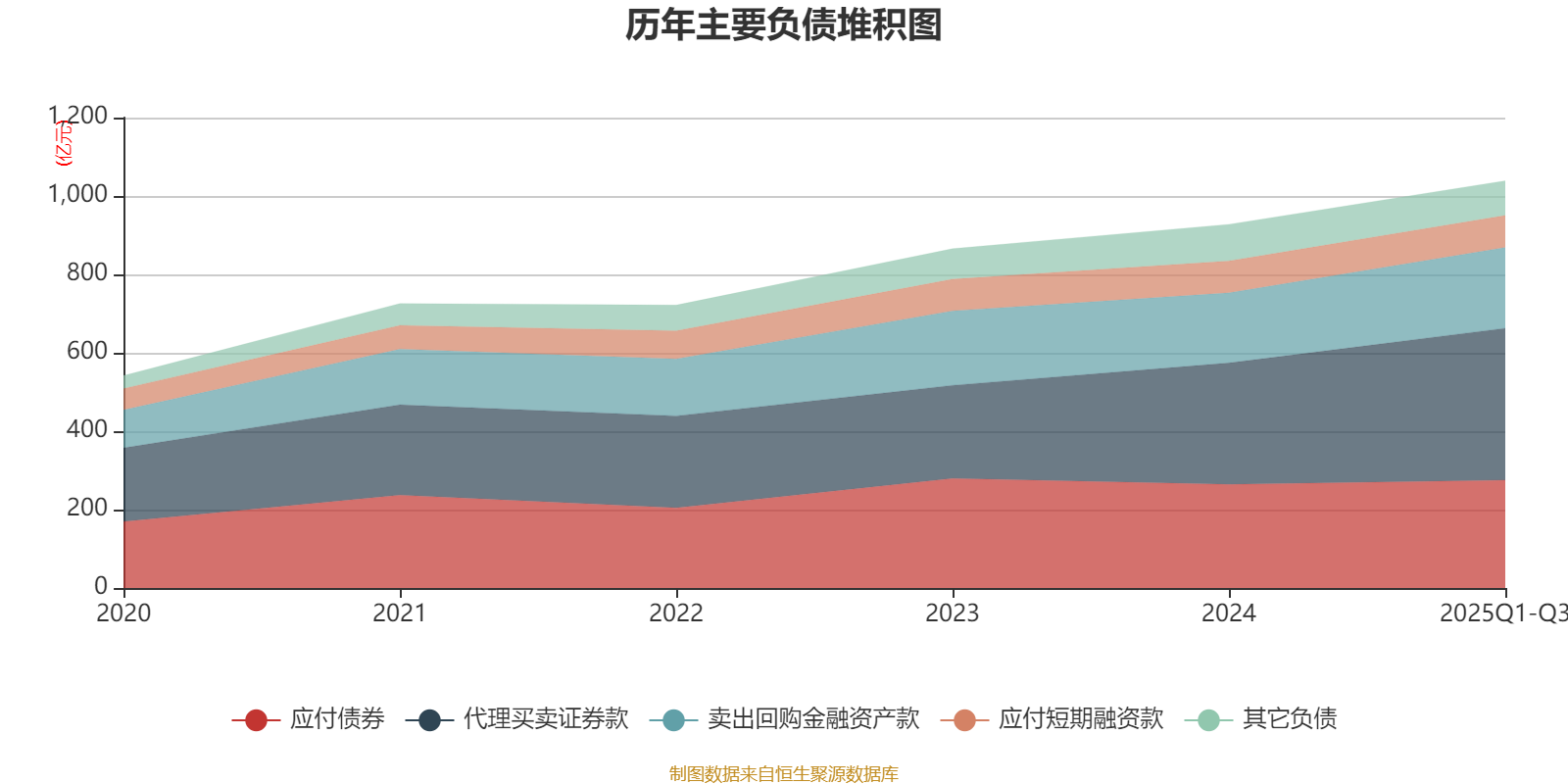 负债重大变化方面,截至2025年三季度末,公司代理买卖证券款较上年末增加24.92%,占公司总资产比重上升3.33个百分点;拆入资金较上年末减少31.23%,占公司总资产比重下降1.34个百分点;应付债券较上年末增加4.23%,占公司总资产比重下降1.18个百分点;卖出回购金融资产款较上年末增加15.4%,占公司总资产比重上升0.67个百分点。