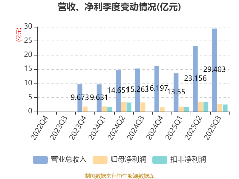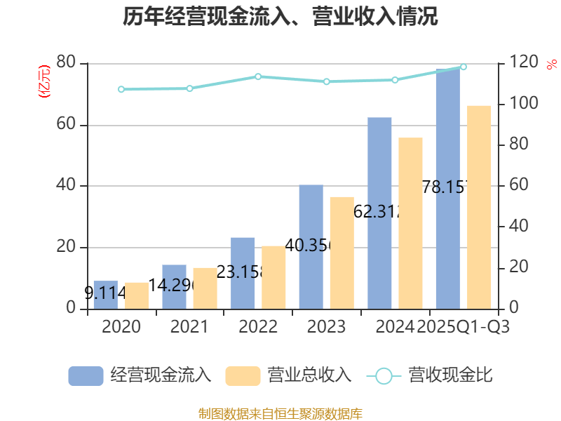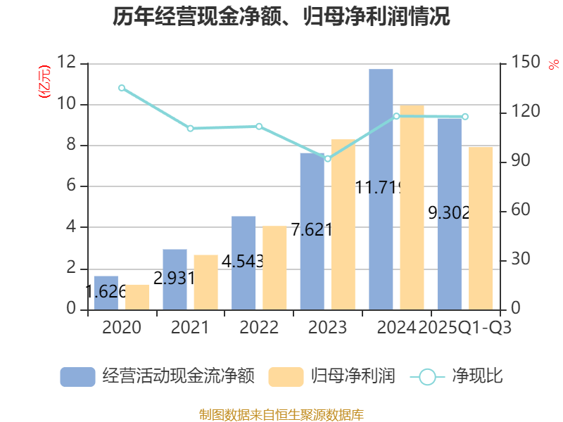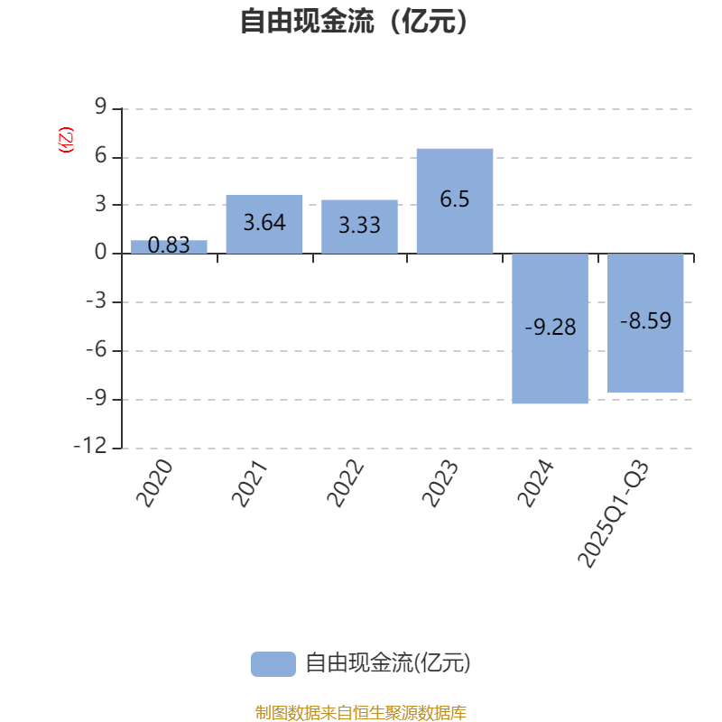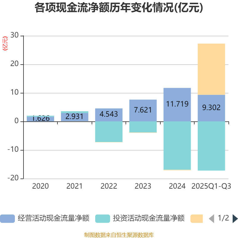 2025年前三季度,公司经营活动现金流净额为9.3亿元,同比下降4.89%;筹资活动现金流净额17.92亿元,同比增加18.05亿元;投资活动现金流净额-17.22亿元,上年同期为-10.67亿元。