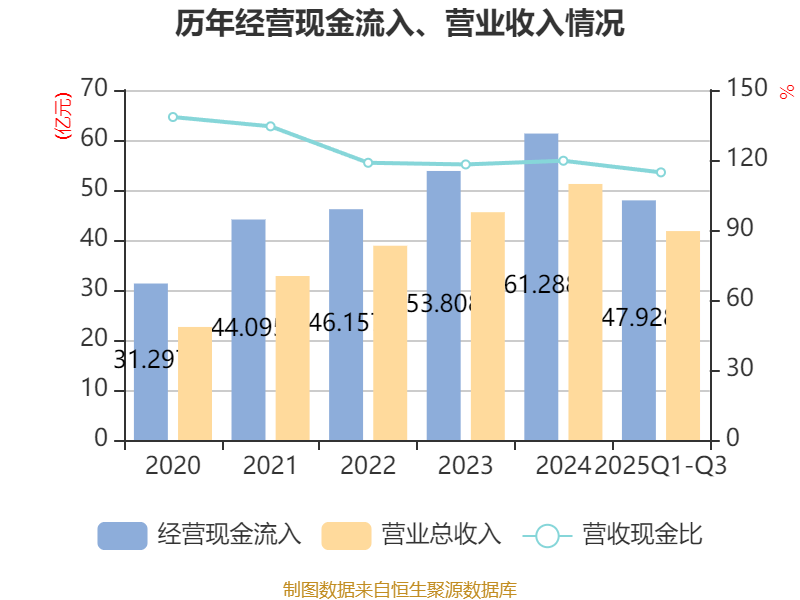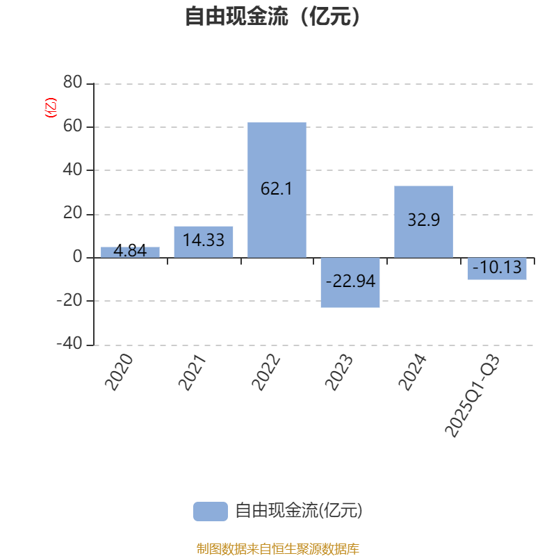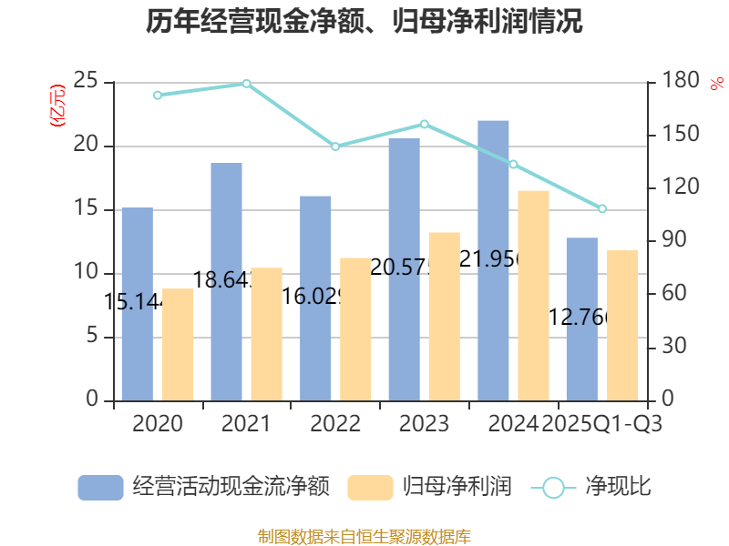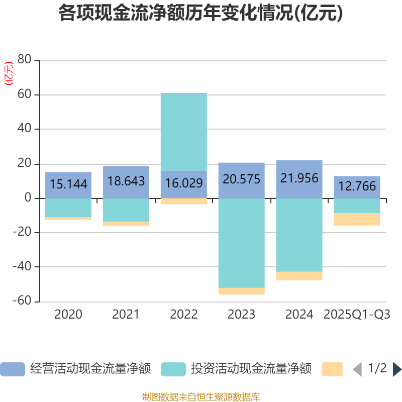 2025年前三季度,公司经营活动现金流净额为12.77亿元,同比增长18.26%;筹资活动现金流净额-7.22亿元,同比减少2.37亿元;投资活动现金流净额-8.71亿元,上年同期为-35.28亿元。