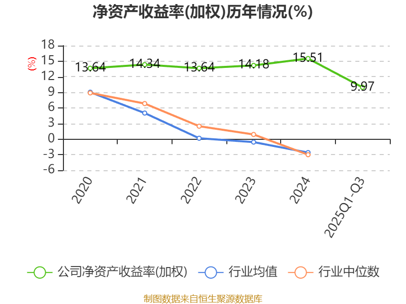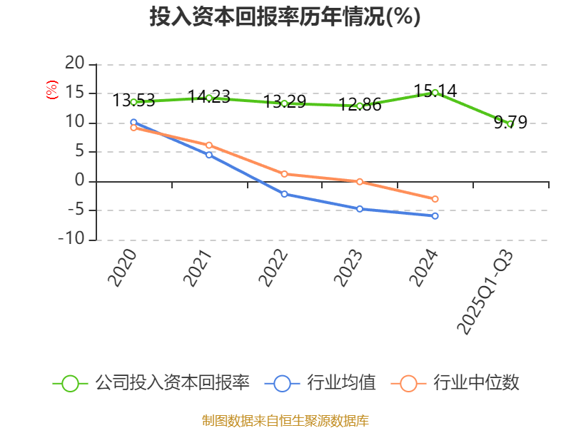 盈利能力方面, 2025年前三季度公司加权平均净资产收益率为9.97%,同比下降0.09个百分点。公司2025年前三季度投入资本回报率为9.79%,较上年同期上升0.01个百分点。