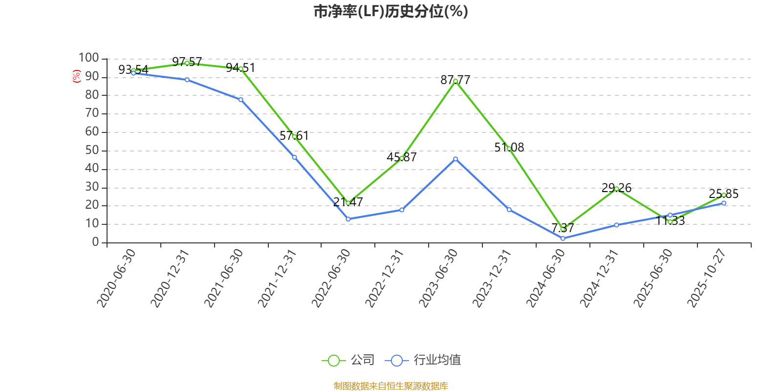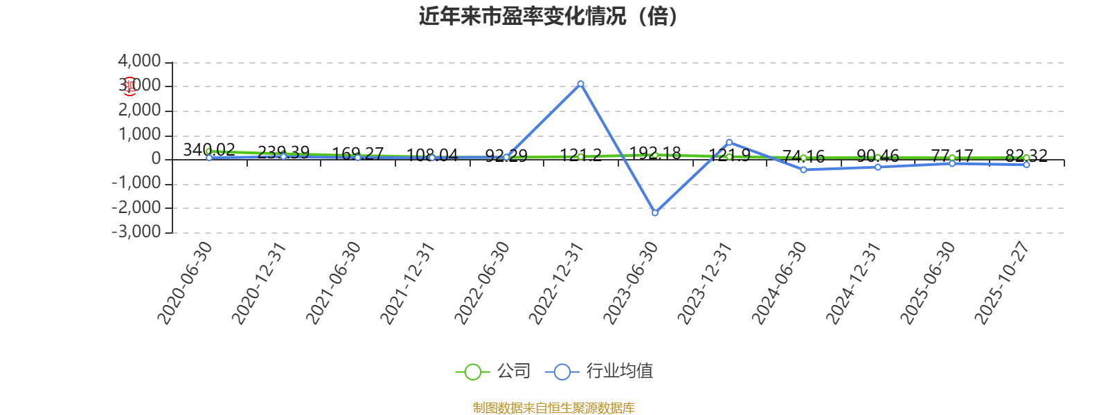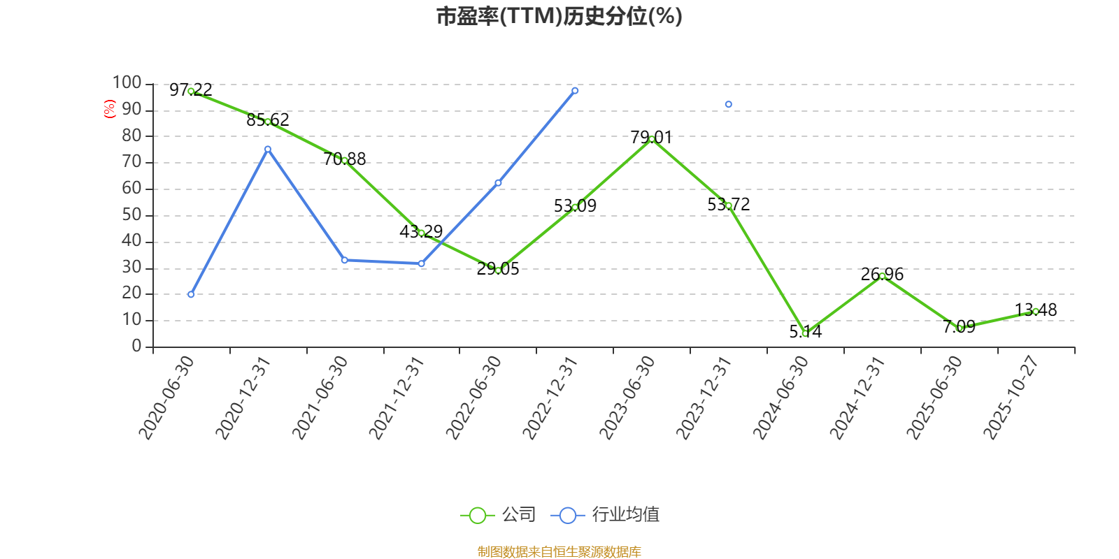 市盈率、市净率为负时,不显示当期分位数,会导致折线图中断。