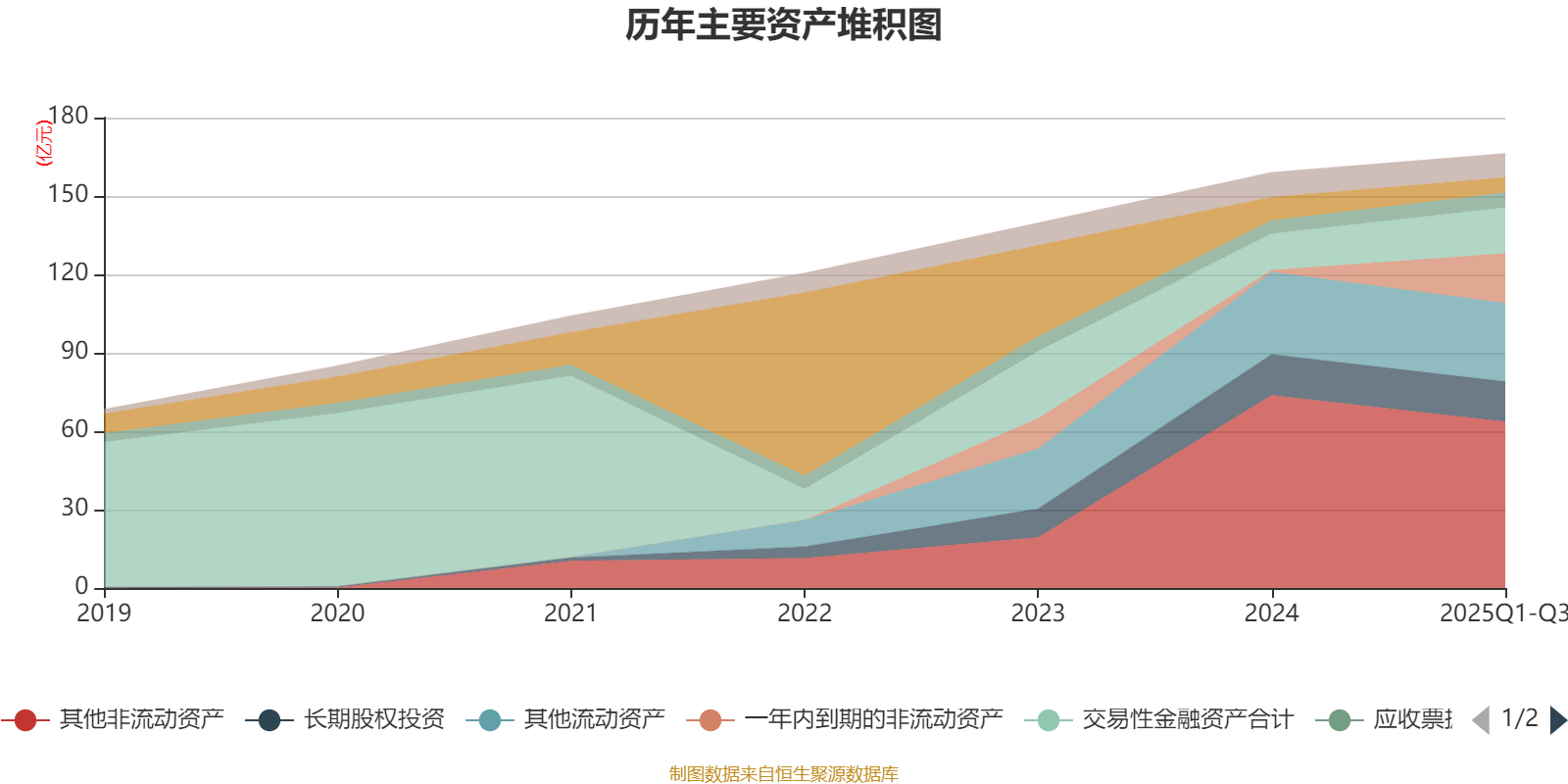 资产重大变化方面,截至2025年三季度末,公司一年内到期的非流动资产较上年末增加2359%,占公司总资产比重上升10.94个百分点;其他非流动资产较上年末减少13.82%,占公司总资产比重下降8.14个百分点;货币资金较上年末减少35.24%,占公司总资产比重下降2.15个百分点;交易性金融资产合计较上年末增加26.78%,占公司总资产比重上升1.85个百分点。